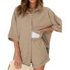 imageEkouaer Waffle Knit Lounge Sets for Women Short Sleeve Pajamas Button Down Pjs Oversized Loungewear Shorts SetArmy Green