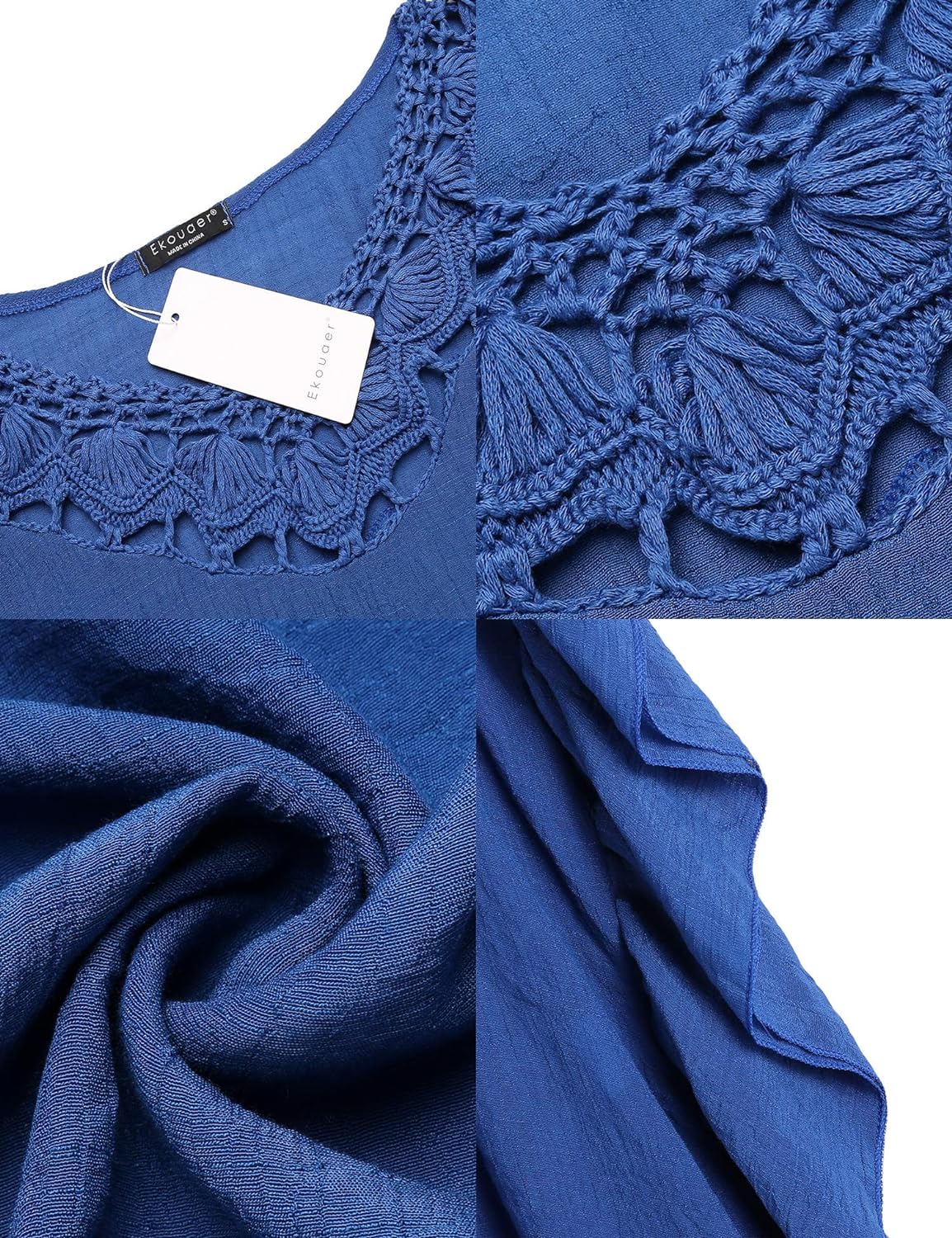 Ekouaer Women Crochet Neck Beach Cover UpSnorkel Blue