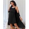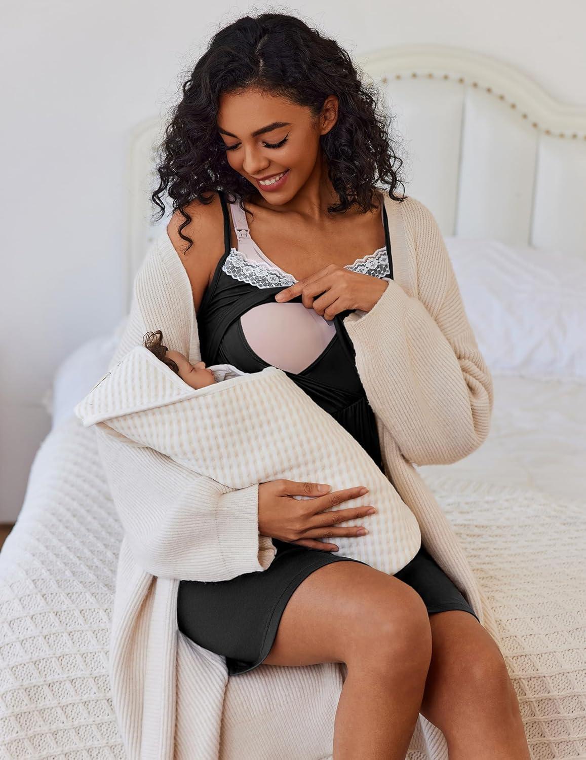 Ekouaer Women Lace Maternity Nursing Gown and 3/4 Sleeve Robe Set Double Layer Breastfeeding Nightgown Slip Dress & Bathrobe(Black)