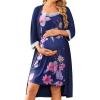 imageEkouaer Women Lace Maternity Nursing Gown and 34 Sleeve Robe Set Double Layer Breastfeeding Nightgown Slip Dress ampamp BathrobeBlue Green Floral