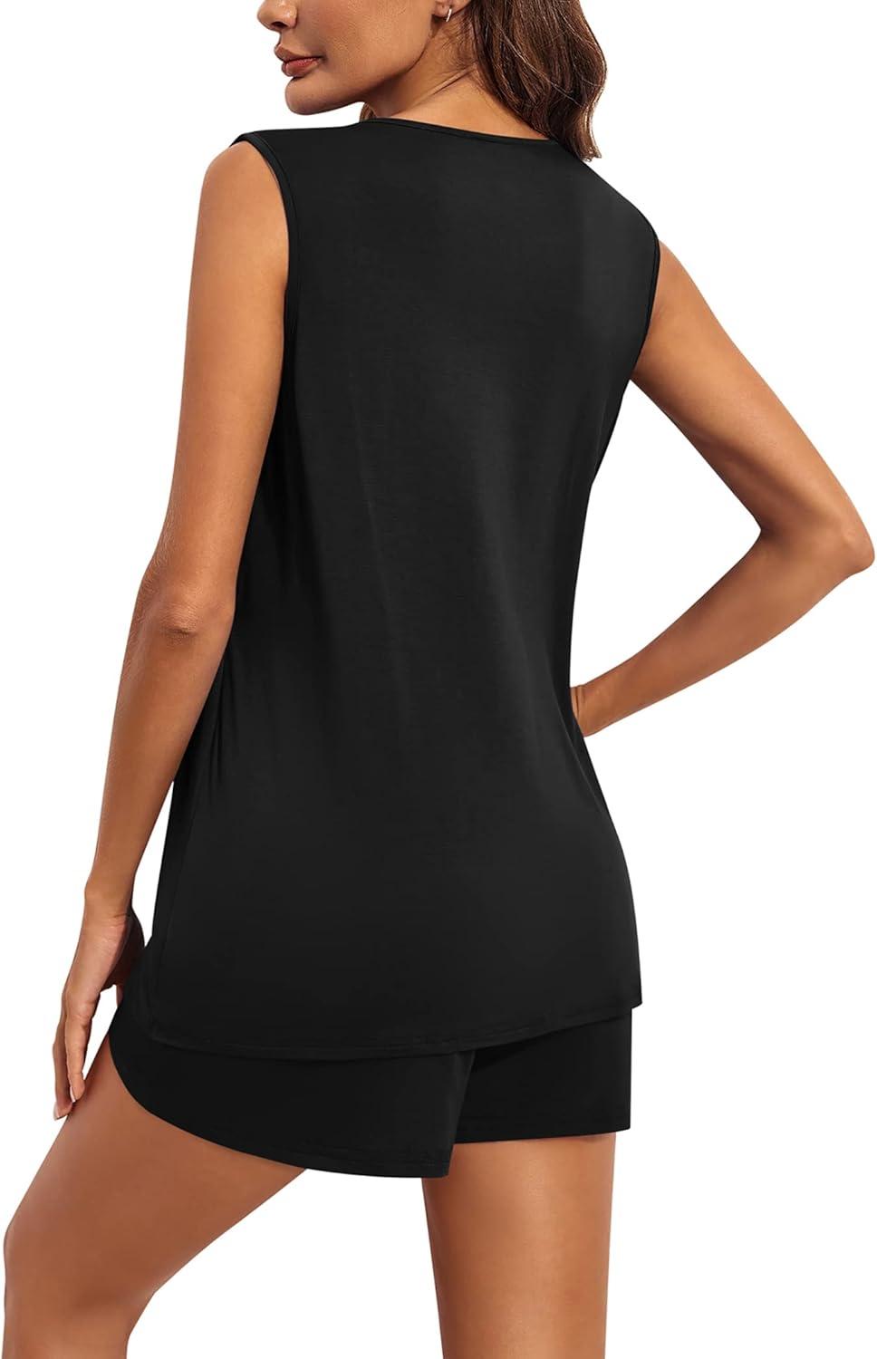 Ekouaer Women Maternity Nursing Pajama Set Breastfeeding Sleepwear Double Layer Sleeveless Top & Shorts Pregnancy PJS(A01-black)