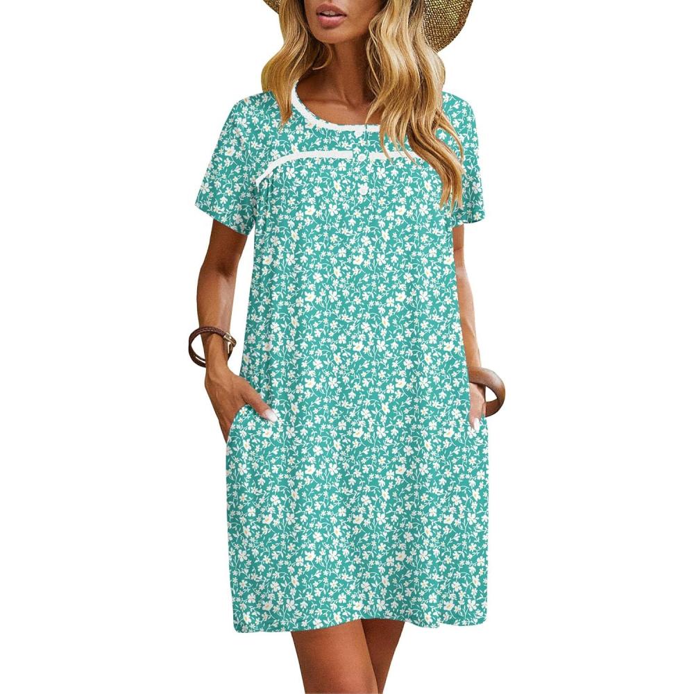 Ekouaer Women Nightgowns Short Sleeve Sleepwear Soft Pajama Dress Sleep Shirt Nightshirt S-2XL(Green Flower)