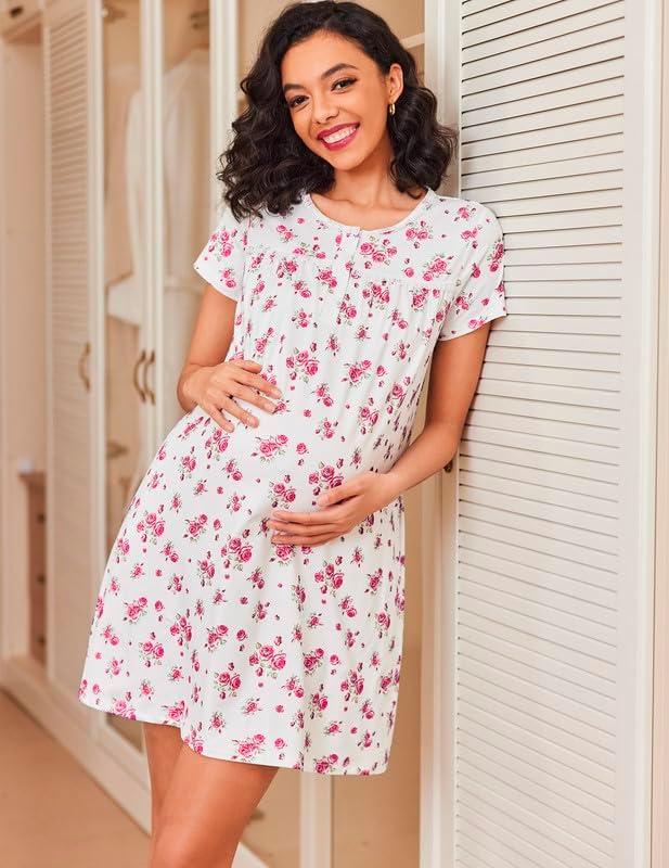 Ekouaer Women Nightgowns Short Sleeve Sleepwear Soft Pajama Dress Sleep Shirt Nightshirt S-2XL(Pink Floral)