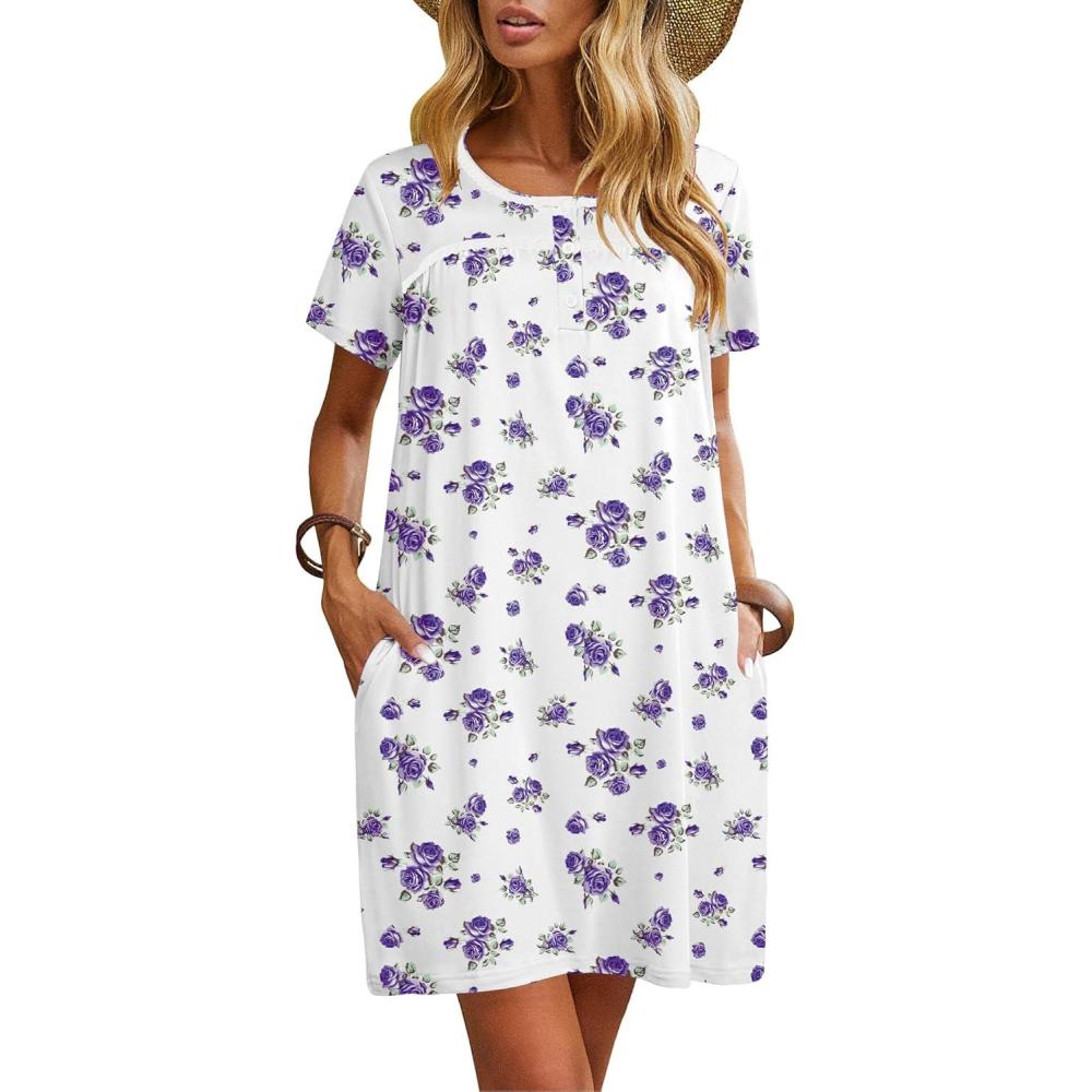 imageEkouaer Women Nightgowns Short Sleeve Sleepwear Soft Pajama Dress Sleep Shirt Nightshirt S2XLPurple Floral