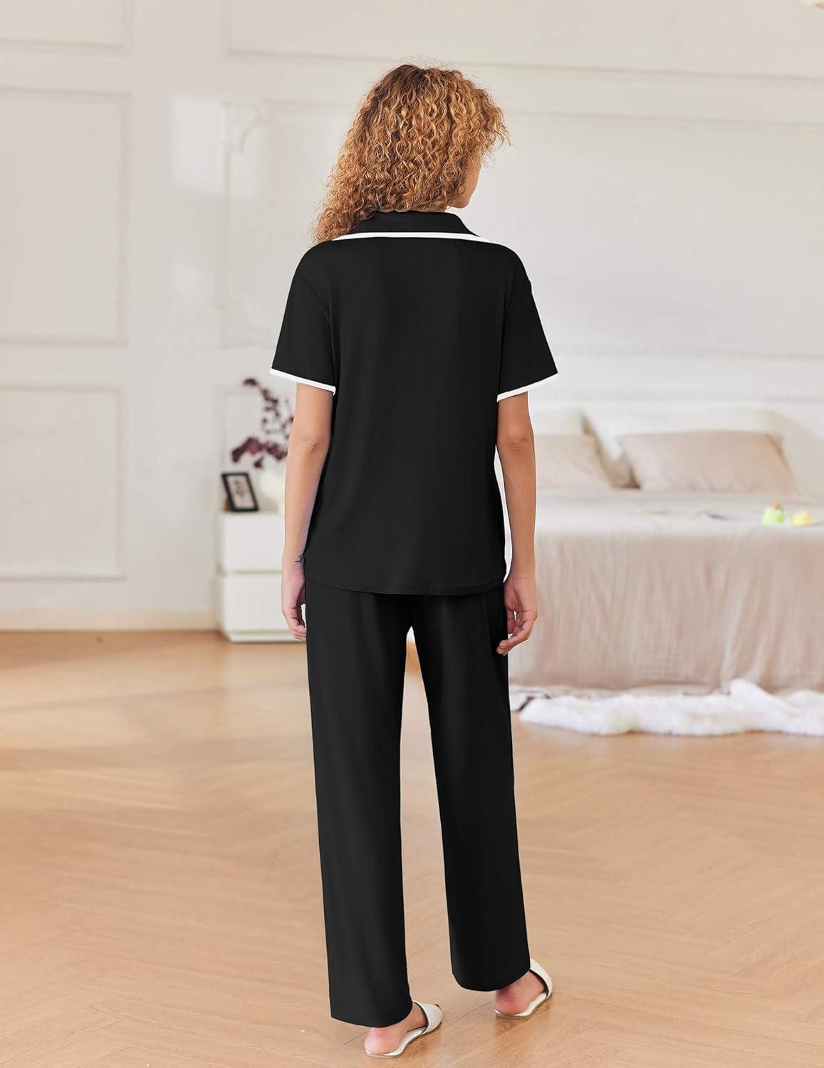 Be the first to review “Ekouaer Women Pajamas Set Button Down Notch Collar Soft Short Sleeve Pjs Set with Long Pant Set Lounge Set(Black)” Cancel reply