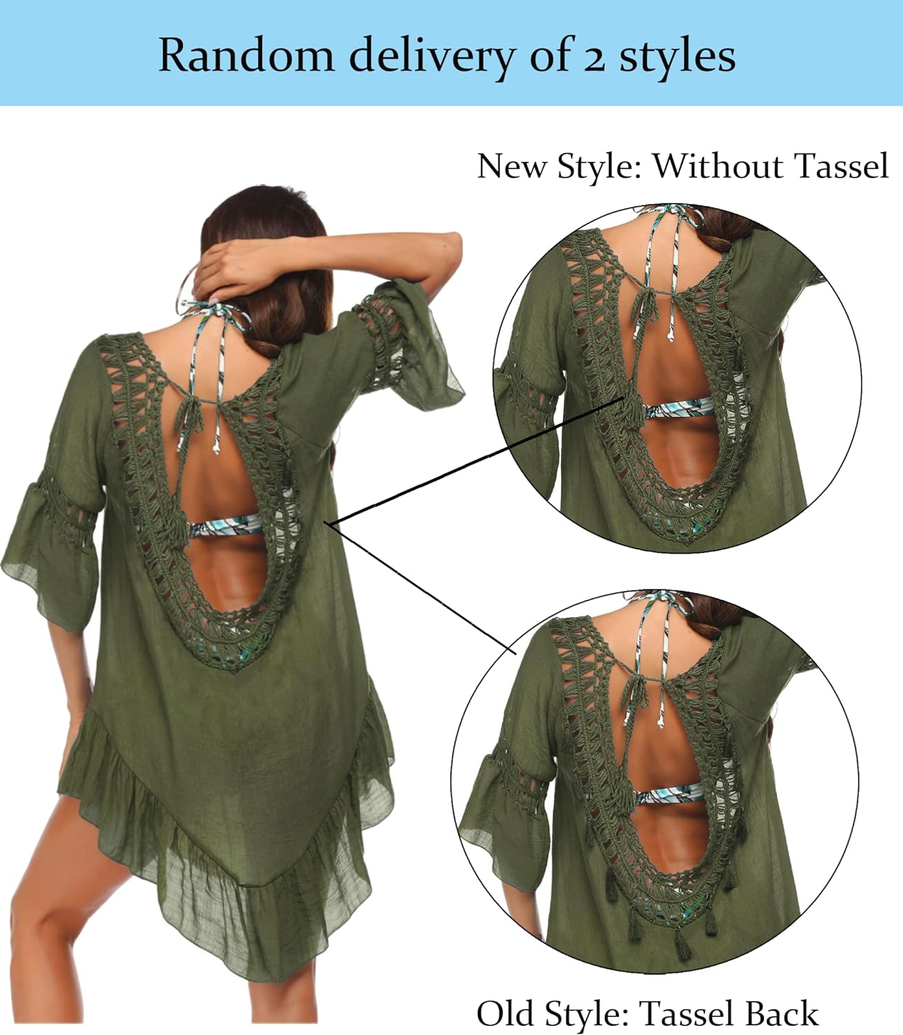 Ekouaer Women Swimwear V Neck Crochet Cover Ups(A-c-army Green)