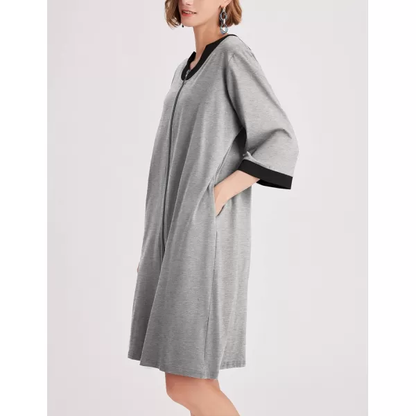 Ekouaer Women Zipper Robe 3/4 Sleeve Nightgowns Lightweight Short Bathrobe with Pockets S-3XL(Grey)