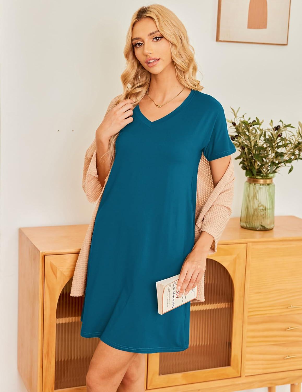 Don’t miss out on our limited-time offer: buy Ekouaer Womens 2 Pack Nightgown V Neck Sleepshirt Short Sleeve Nightshirt Plain/Floral Pajama Dress with Pockets(Black+blue Green), get a free {accessory}!
