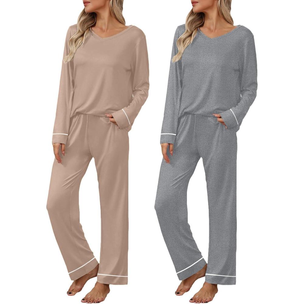 Get your hands on our newest Ekouaer Womens 2 Pack Pajama Set Long Sleeve Pajamas Top and Pants V Neck Pjs Set Soft Loungewear with Pockets(Dark Khaki mix Grey) and enjoy a limited-time discount offer.