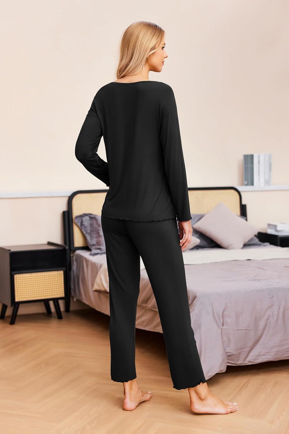 Ekouaer Womens 2 Pack Pajama Set Long Sleeve Pajamas Top and Pants V Neck Pjs Set Soft Sleepwear Loungewear(Black + Dark Gray)