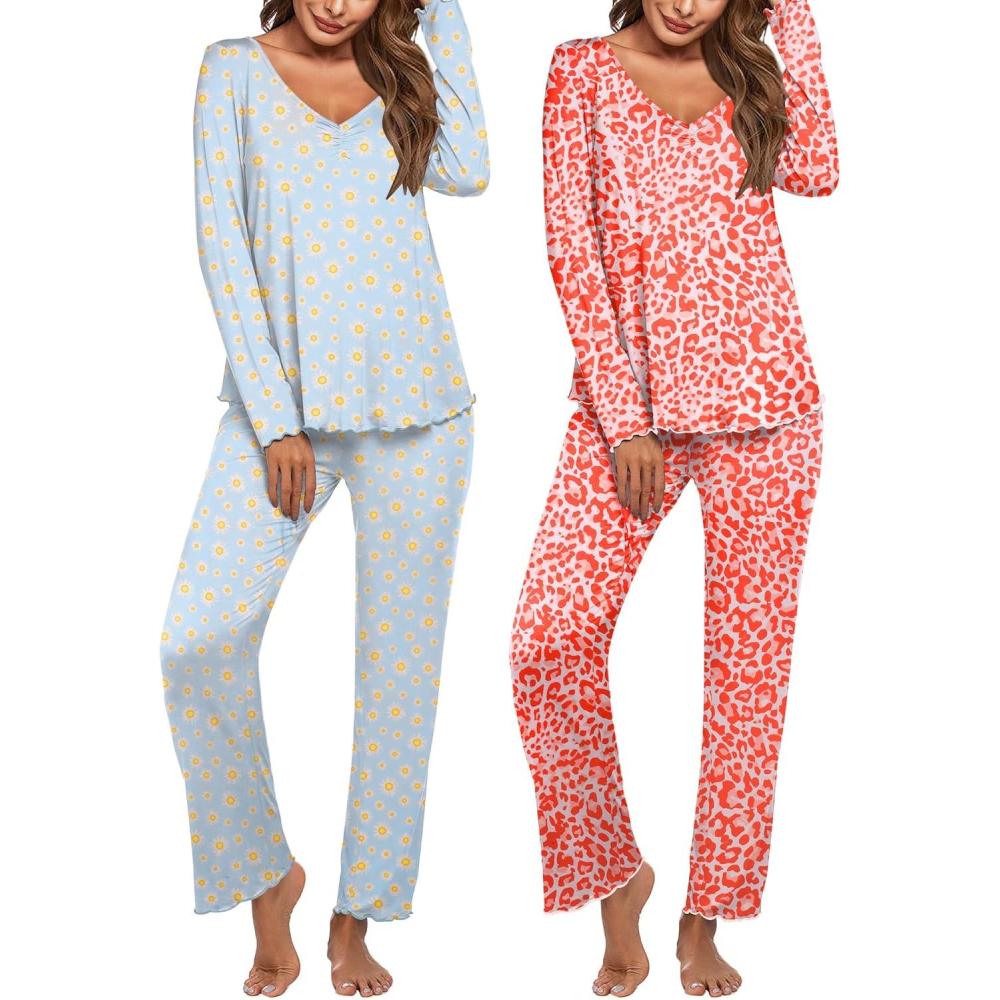 Our holiday sale features the best deals on Ekouaer Womens 2 Pack Pajama Set Long Sleeve Pajamas Top and Pants V Neck Pjs Set Soft Sleepwear Loungewear(Leopard Red + Little Daisy) and accessories. Shop now and save!