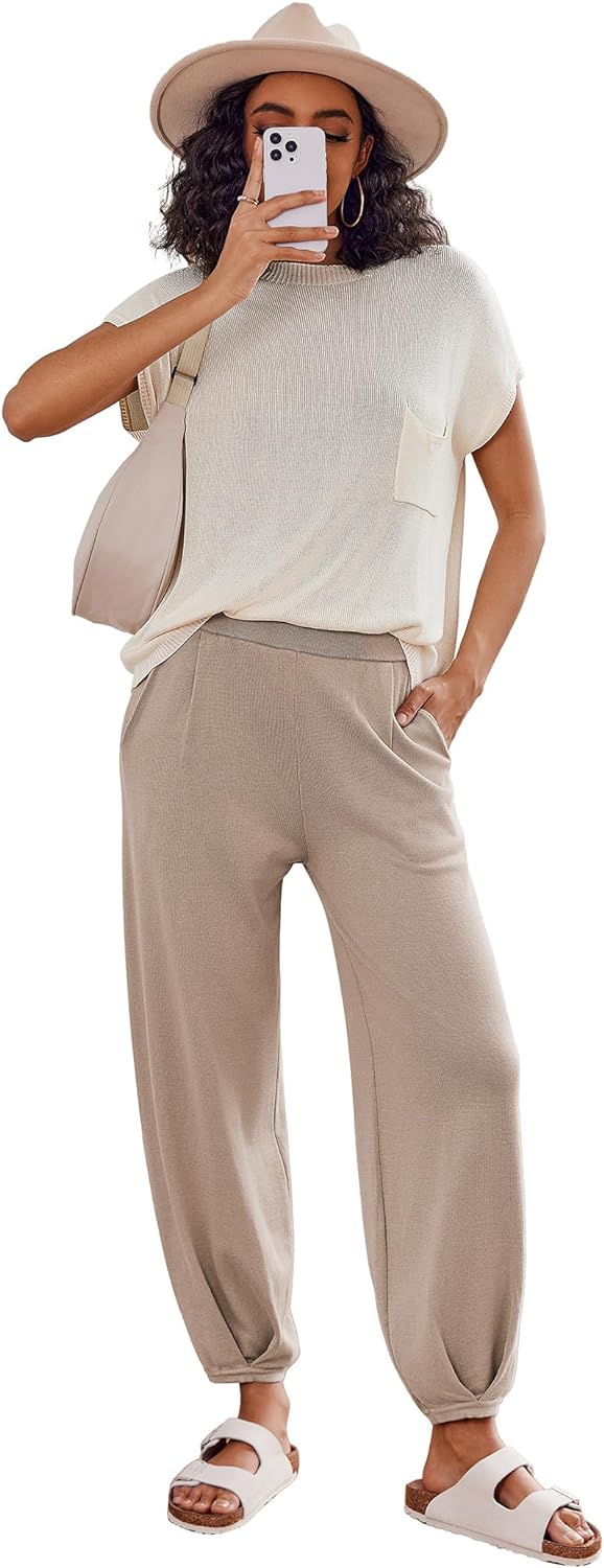 Get up to 60% off on Ekouaer Women’s 2 Piece Lounge Set Cap Sleeve Tops and Jogger Pants Knit Pajama Sweatsuit S-XXL(Beige) styles during our winter sale event.