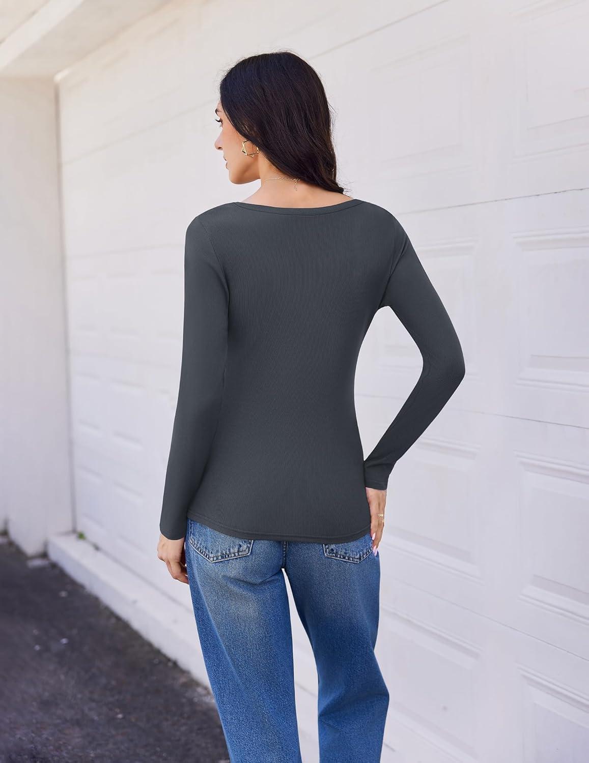 Ekouaer Womens 3 Pack Long Sleeve Shirts V Neck Ribbed Slim Fit Basic Tops Thermal Undershirts Casual Tee XS-XXL(Black/Beige/Dark Grey)