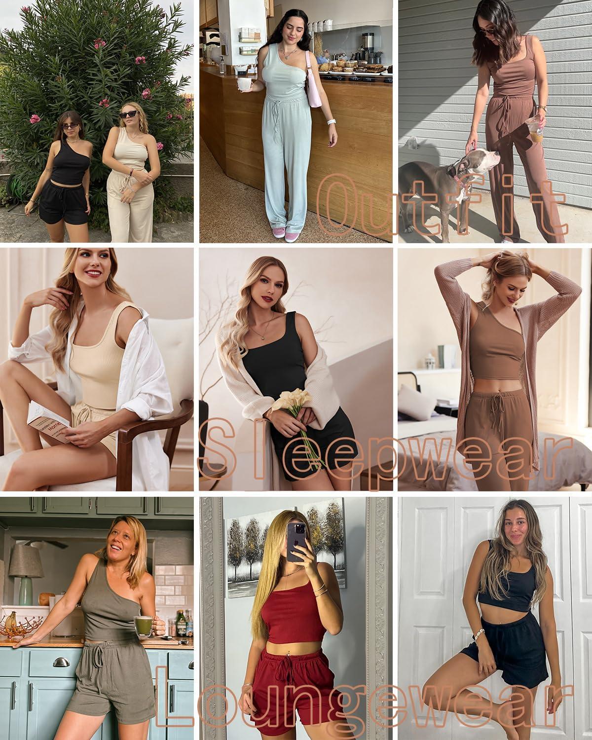 Save up to 40% on Ekouaer Womens 4 Piece Lounge Sets Ribbed Knit Crop Tank Top and Shorts Pants Casual Outfits(01 Light Coffee) styles during our end-of-season sale.
