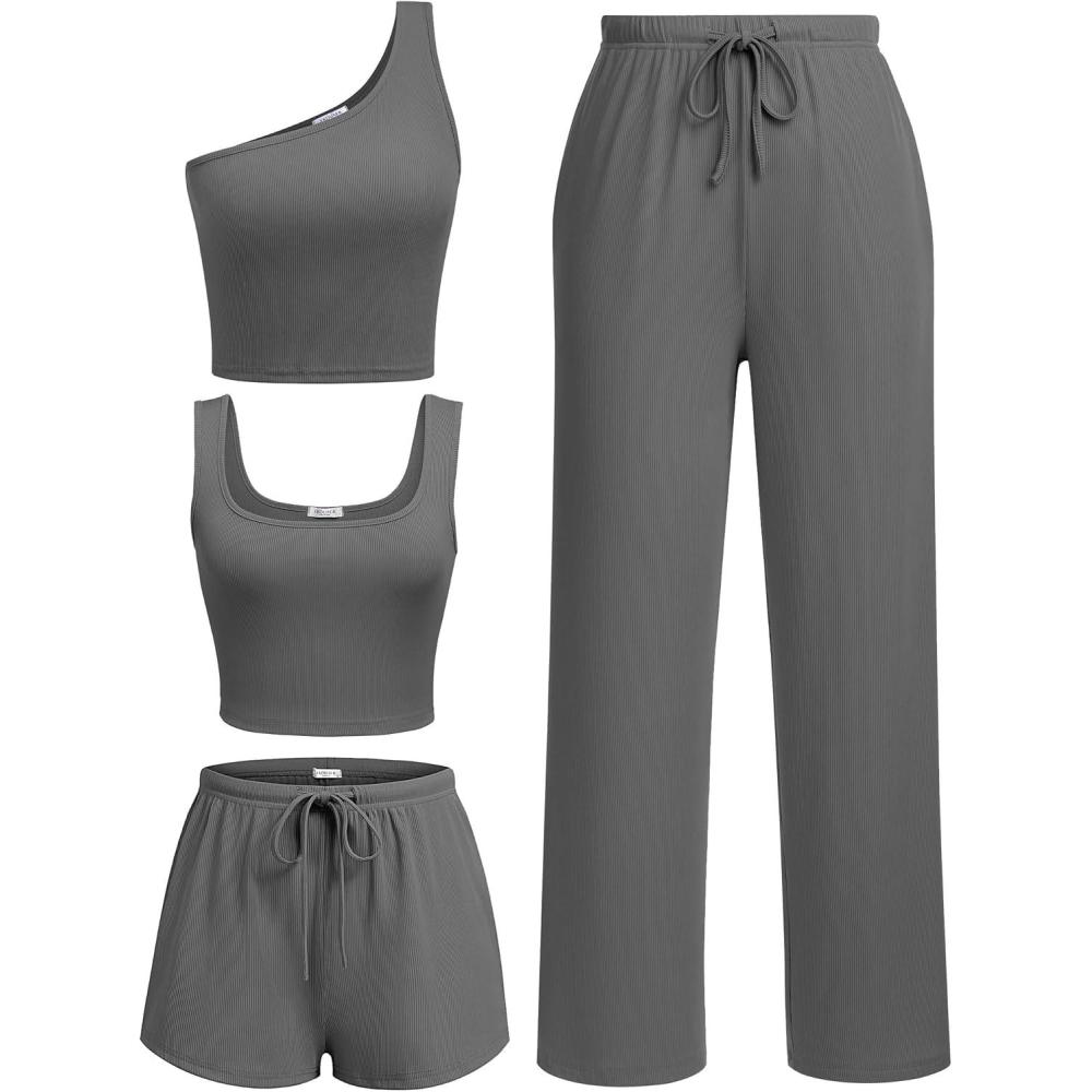 Get your hands on our newest Ekouaer Womens 4 Piece Lounge Sets Ribbed Knit Crop Tank Top and Shorts Pants Casual Outfits(Dark Grey) and enjoy a limited-time discount offer.