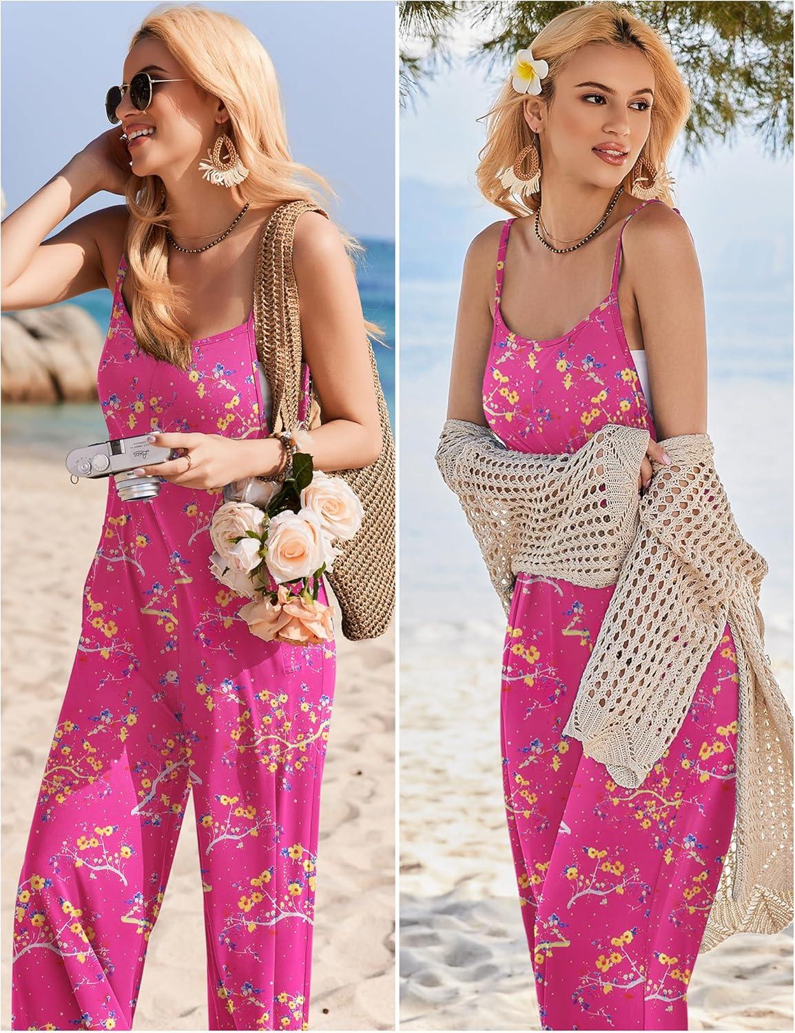 Get the Ekouaer Womens Casual Sleeveless Jumpsuits Summer Boho Wide Leg Floral Rompers Overalls with Pockets(Rose Pink Floral) you want at a price you can afford with our markdown sale.