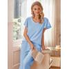 imageEkouaer Womens Cotton Pajamas Sets Short Sleeve Tops and Capri Pants Sleepwear Loungewear with PocketsBaby Blue