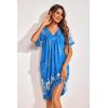 imageEkouaer Womens House Dress Floral Print Nightgown with Pockets Mumu DressSky Blue