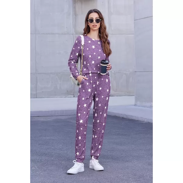 Ekouaer Womens Jogger Pajama Sets Long Sleeve Sleepwear Round Neck Nightwear Soft Pjs Lounge Sets with Pockets(Purple White Star)
