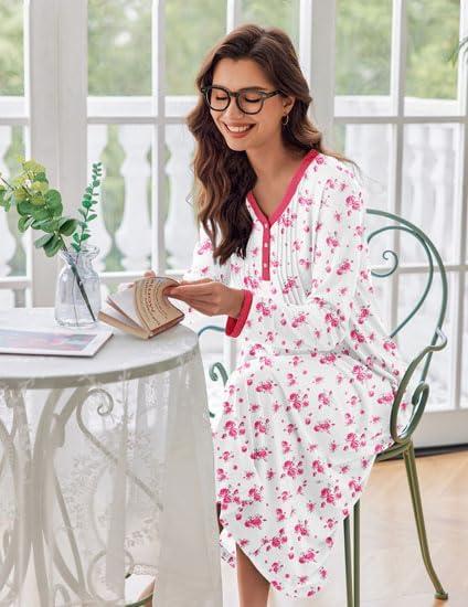 Get your hands on our exclusive Ekouaer Women’s Long Sleeve Nightgown Full Length Sleepwear Long Sleepshirts Henley Sleep Dress S-4XL(Big Pink Flower) collection, now at a discounted price.