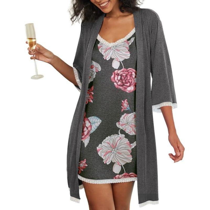 Be the first to review “Ekouaer Women’s Nightgown and Robe Set 3/4 Sleeves Robes 2 Piece Bathrobe Set V-neck Lace Cami Sleepwear with Pockets S-2XL(Dark Gray Pink Flower)” Cancel reply