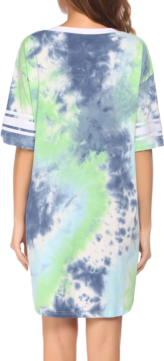 Ekouaer Womens Nightgown Short Sleeve Sleepshirt(Tie dye Tie Dye Green)