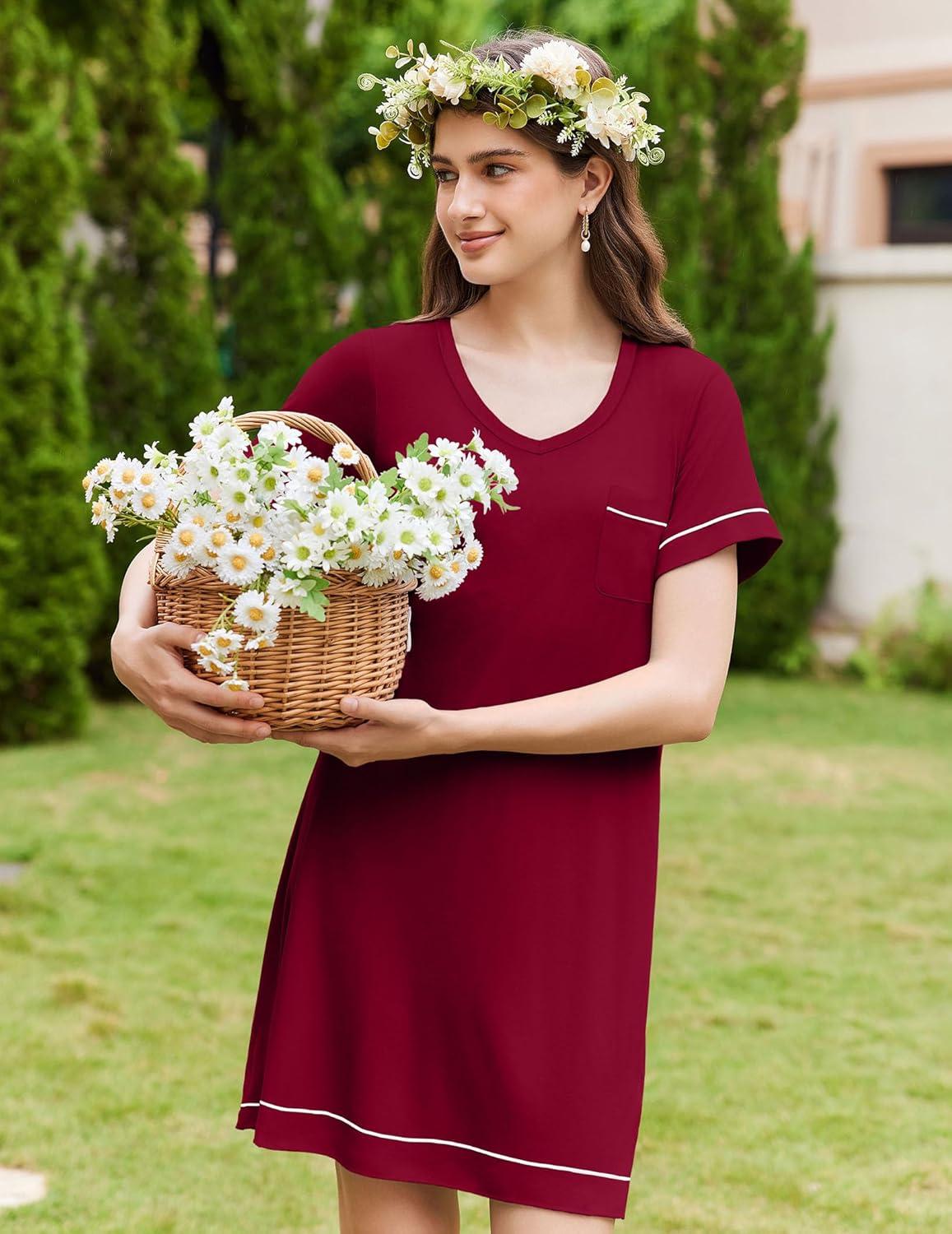 Be the first to review “Ekouaer Womens Nightgowns for Women Short Sleeves V Neck Sleepwear Plus Size Sleepshirt Short Nightshirt Tshirts Dress S-XXL(Wine Red)” Cancel reply