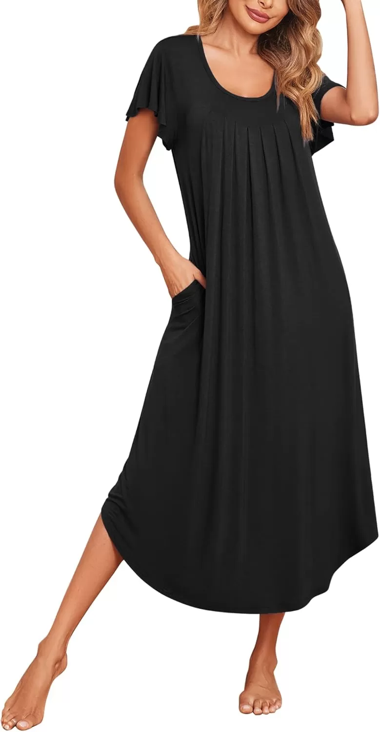 Be the first to review “Ekouaer Women’s Nightgowns Long Sleepshirt Short Flare Sleeve Sleepwear Soft Night Shirts with Pockets M-3XL(Black)” Cancel reply