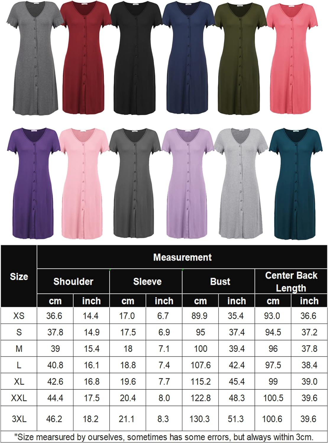 Ekouaer Women’s Nightshirt Short Sleeve Button Down Nightgown V-Neck Sleepwear Pajama Dress(A-ponceau)
