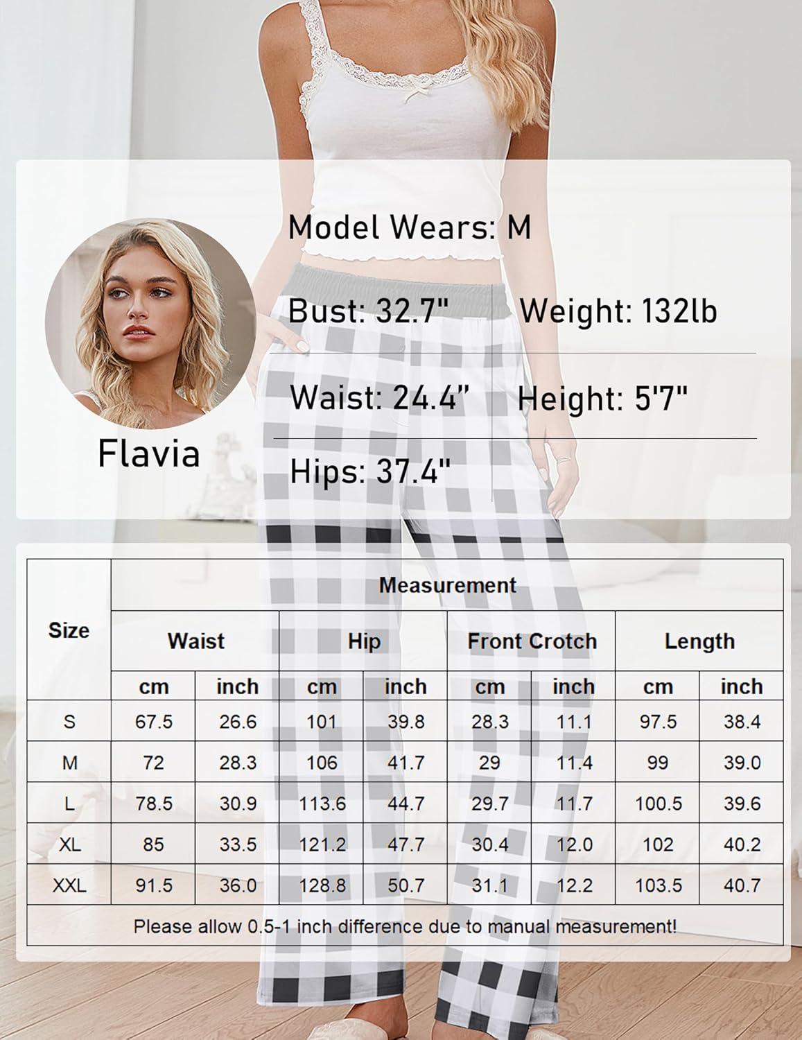 Ekouaer Womens Pajama Pants Soft Comfy Pj Pants for Women Wide Leg Elastic Waist Sleep Bottom with Pockets(Black White Plaid)