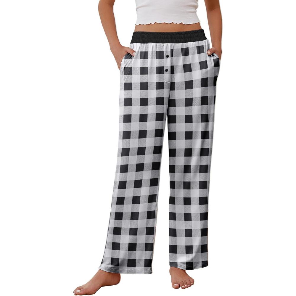 imageEkouaer Womens Pajama Pants Soft Comfy Pj Pants for Women Wide Leg Elastic Waist Sleep Bottom with PocketsBlack White Plaid