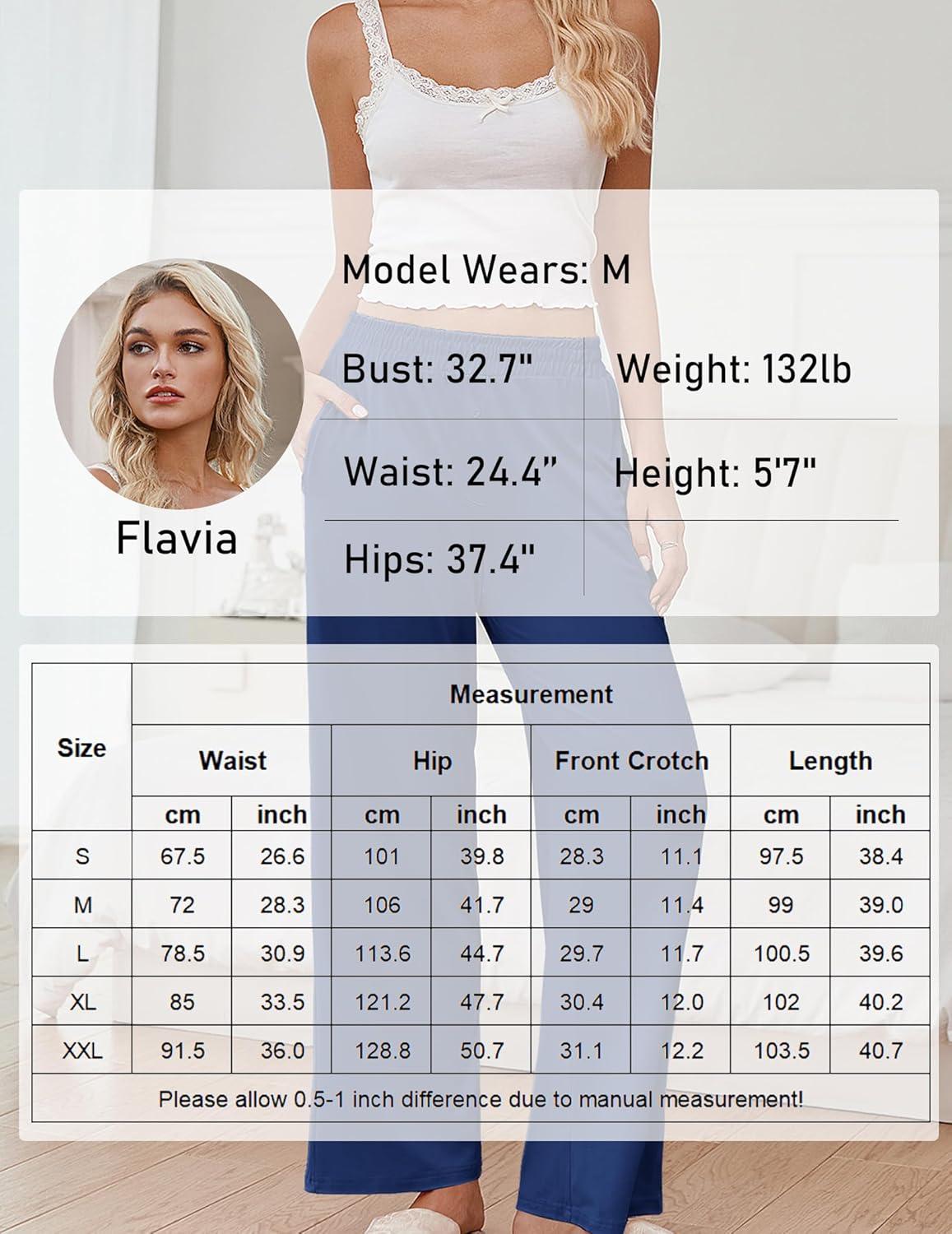 Ekouaer Womens Pajama Pants Soft Comfy Pj Pants for Women Wide Leg Elastic Waist Sleep Bottom with Pockets(Navy Blue)