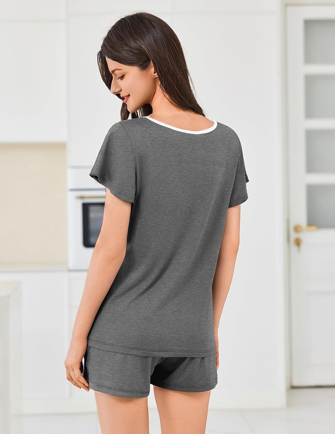 Ekouaer Womens Pajama Set Summer Short Sleeve Pjs Sleepwear Cute 2 Piece Lounge Sets S-XXL(Deep Floral Gray)