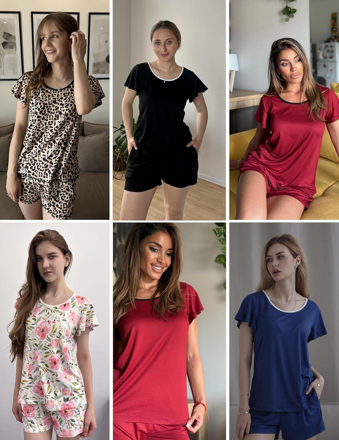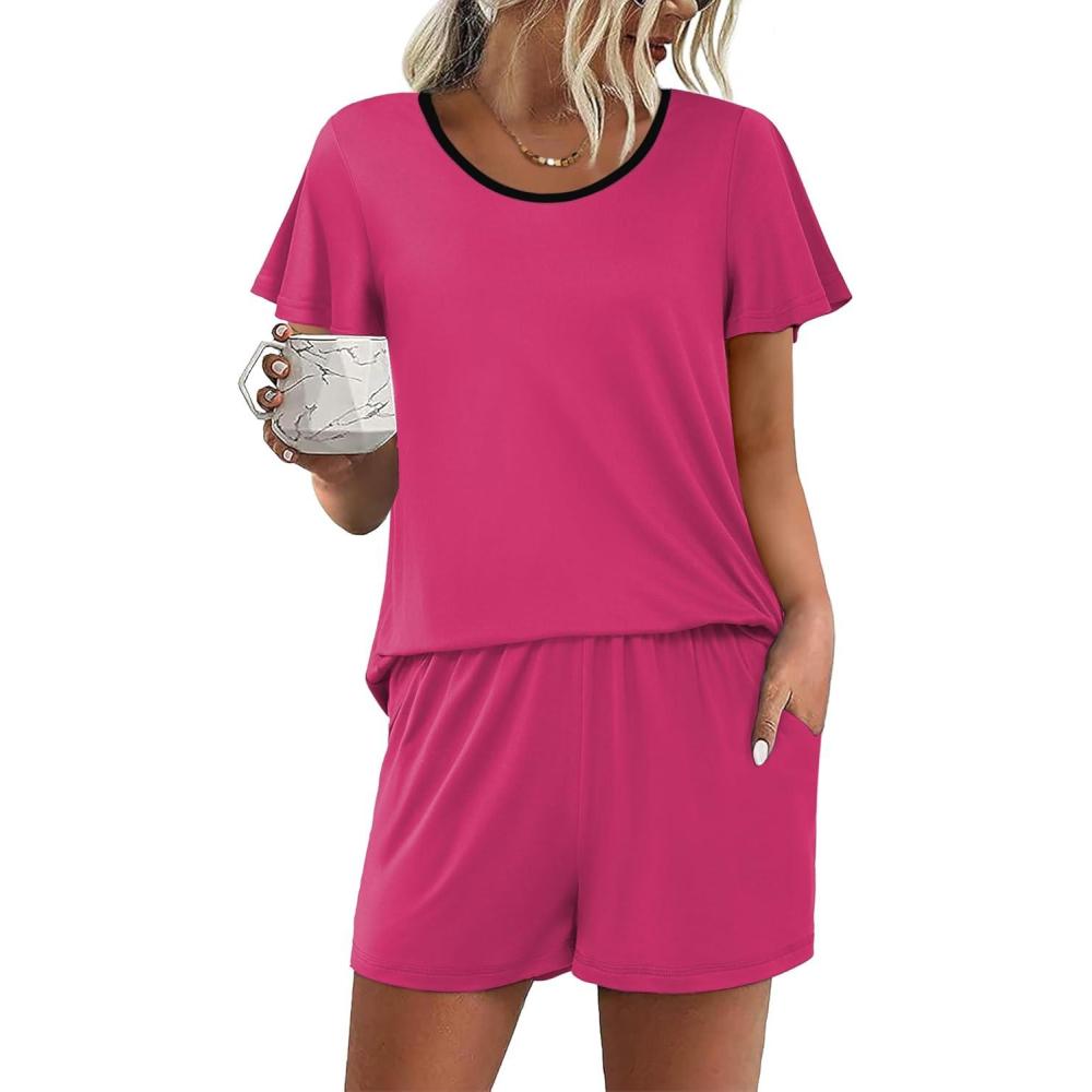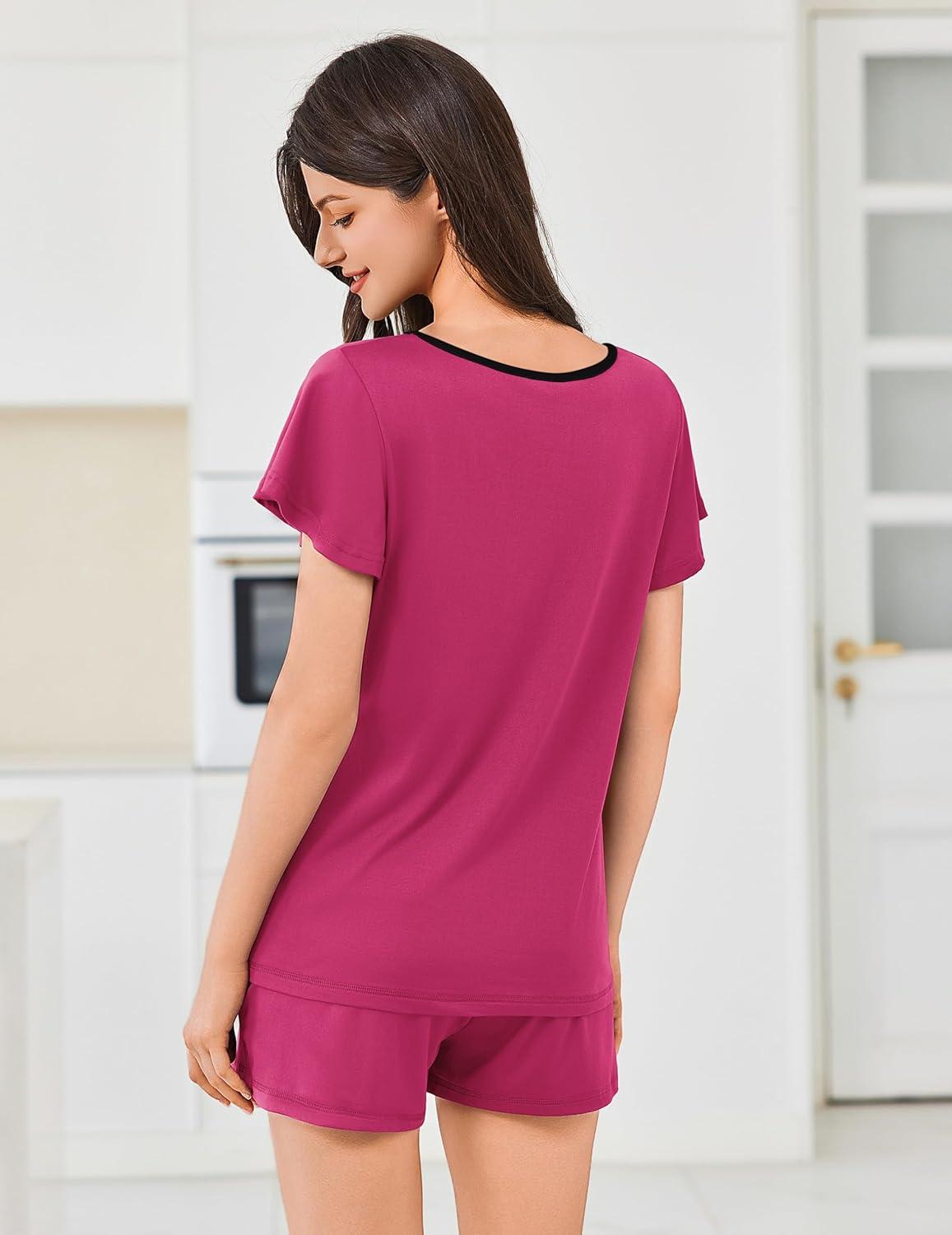 Ekouaer Womens Pajama Set Summer Short Sleeve Pjs Sleepwear Cute 2 Piece Lounge Sets S-XXL(Rose Red)