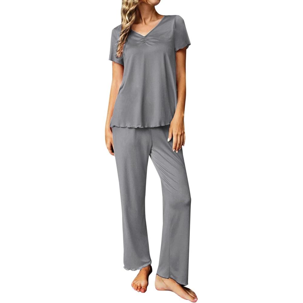 imageEkouaer Womens Pajama Sets 2 Piece Lounge Set Soft Pajamas for Women Set Short Sleeve and Long Pants Pjs with PocketsGrey