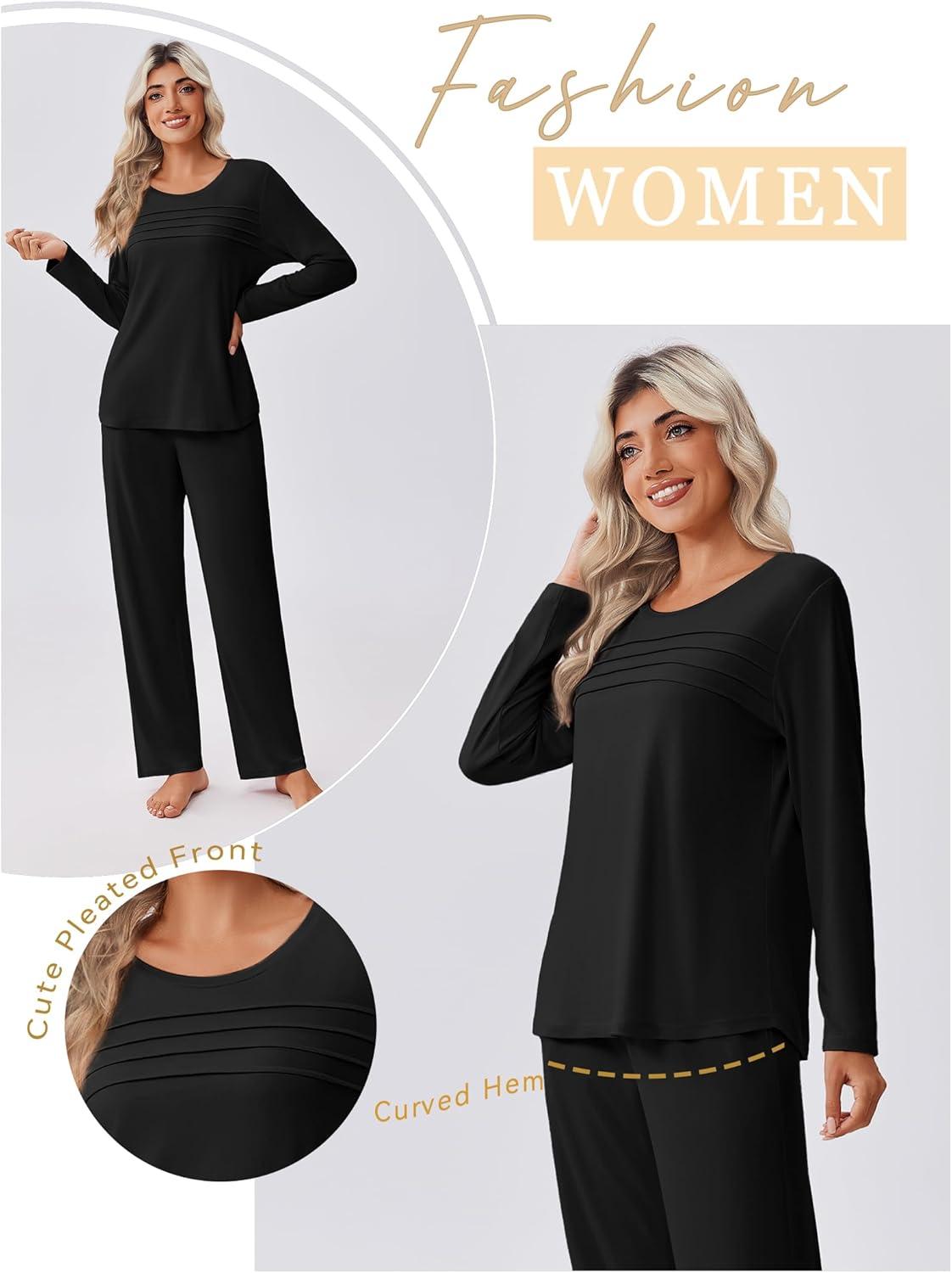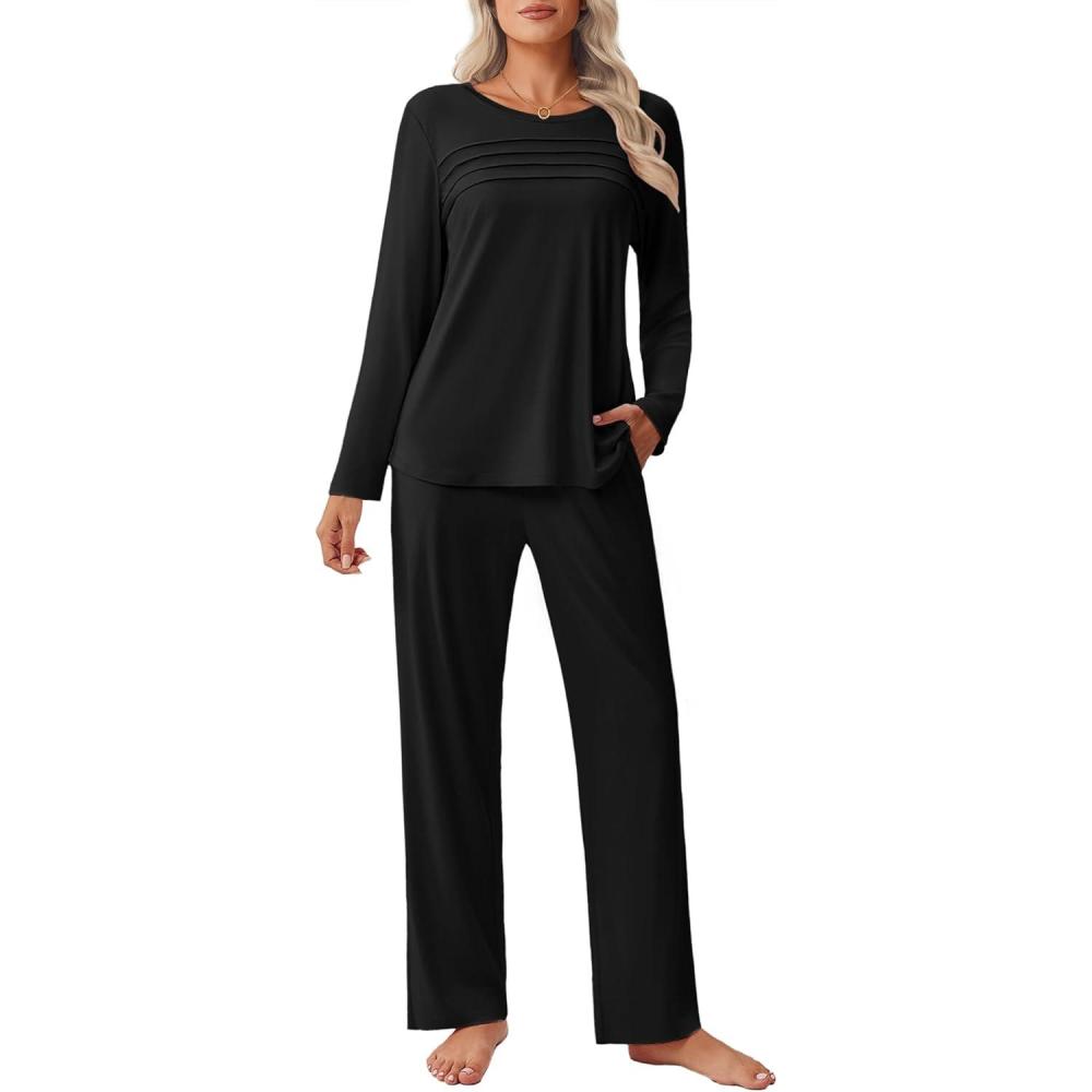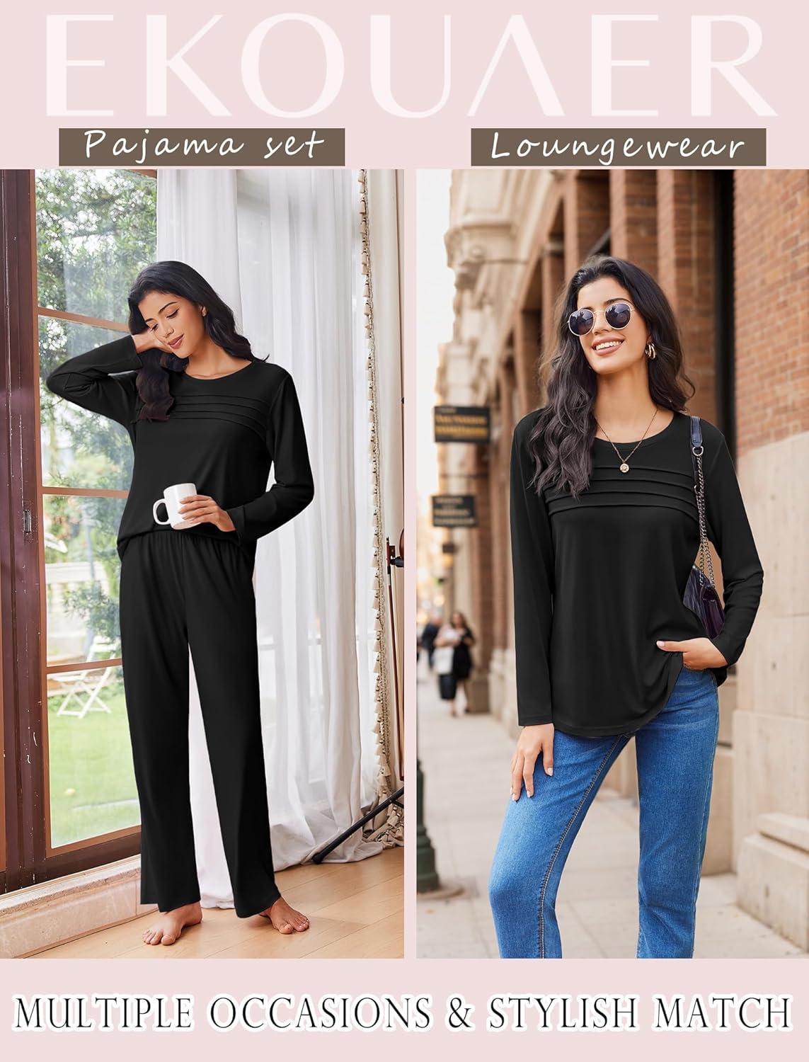 Get your hands on our newest Ekouaer Womens Pajama Sets Pleated Tops with Long Pants Lounge Set Long Sleeve Fall Sleepwear Ladies Pjs S-XXL(Black) and enjoy a limited-time discount offer.