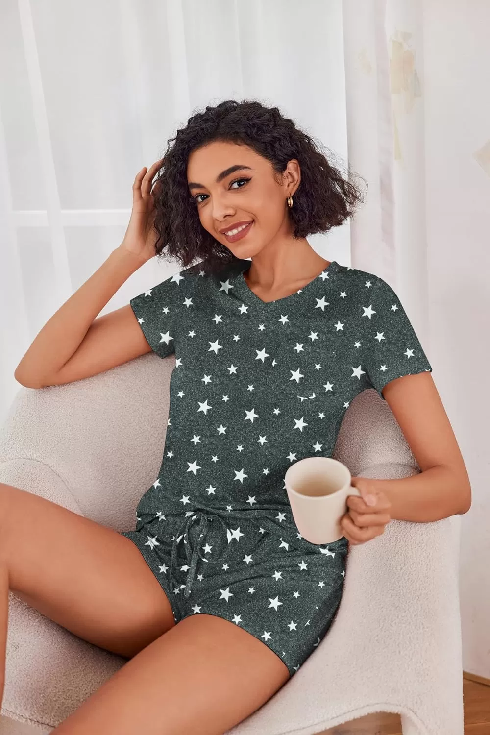 Ekouaer Womens Pajama Sets Short Sleeve Pajamas for Women Sets Soft Lounge Sets Casual V Neck Sleepwear PJS(Dark Gray Stars)