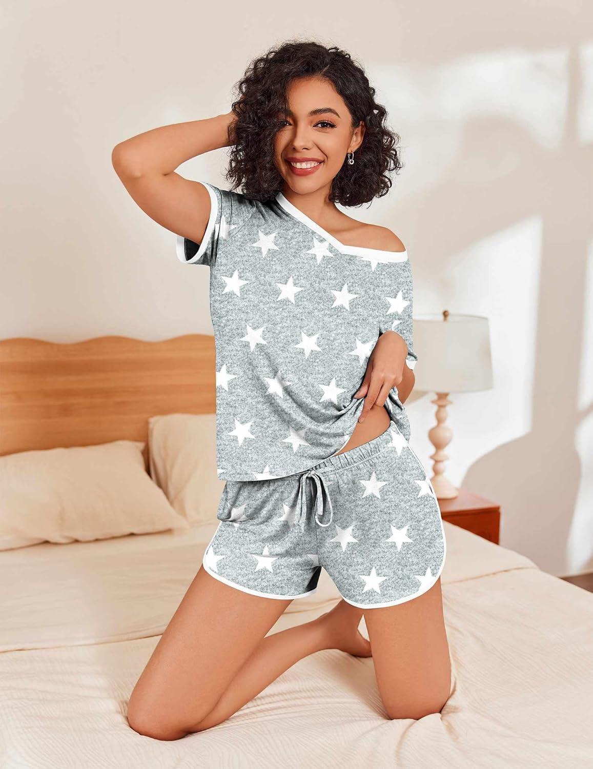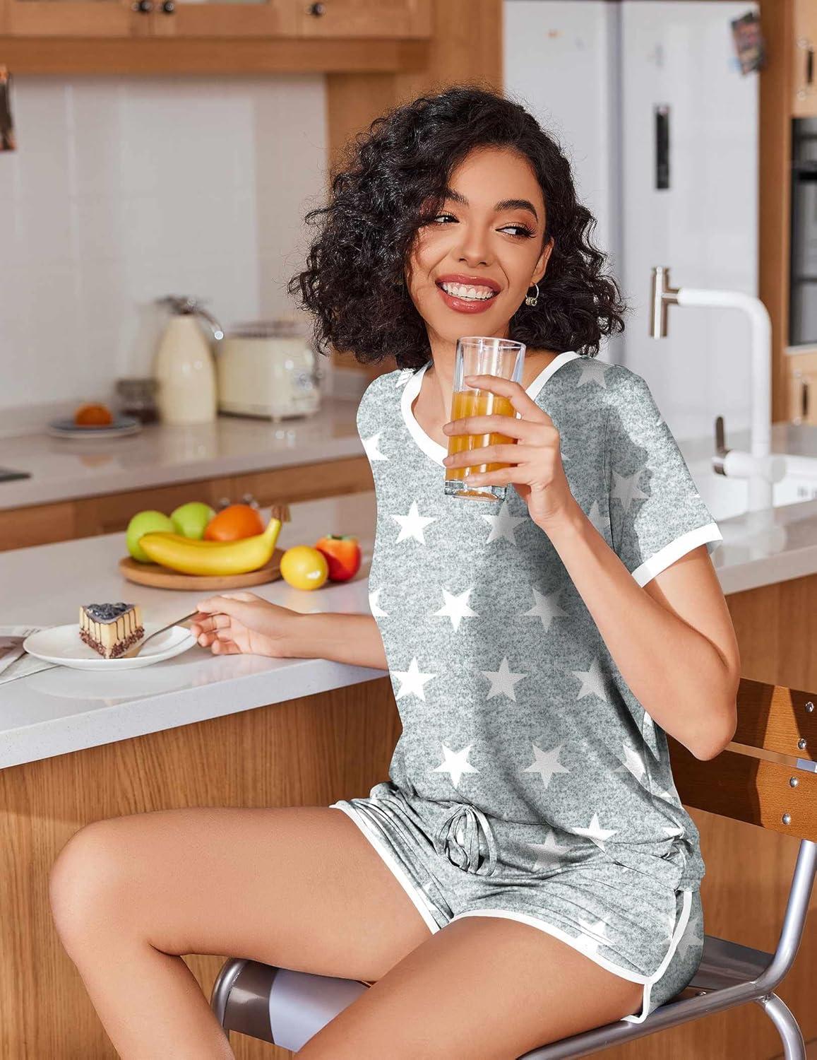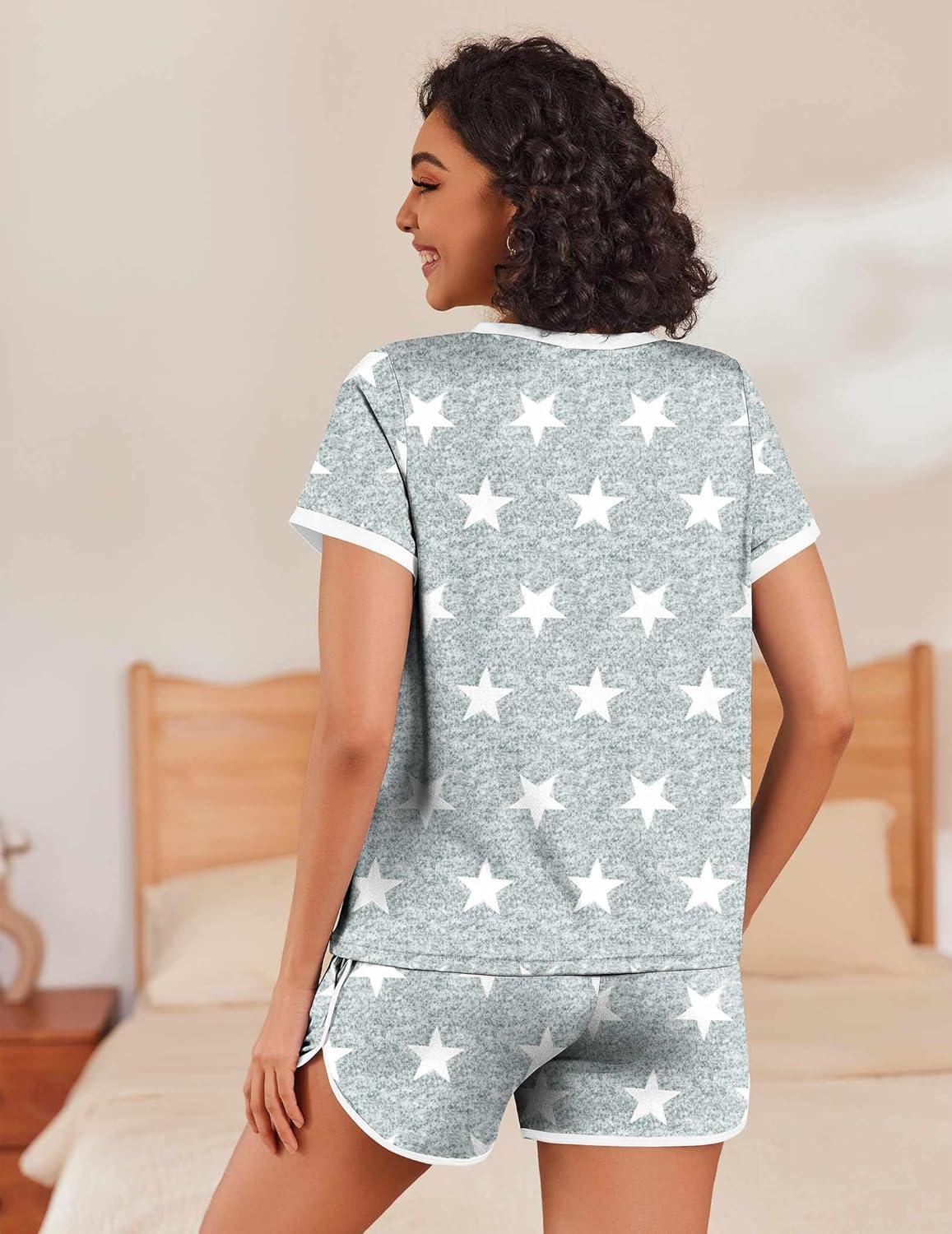 Ekouaer Womens Pajama Short Sets Lounge Sets for Women 2 Piece Soft Pjs Set Casual V Neck Sleepwear with Pockets(Stars-light Grey)