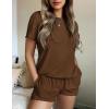imageEkouaer Womens Pajamas 2 Piece Ribbed Knit Pjs Short Sleeve Sleepwear Set Summer Soft Pajamas Set Casual Lounge SetsBrown