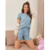imageEkouaer Womens Pajamas 2 Piece Ribbed Knit Pjs Short Sleeve Sleepwear Set Summer Soft Pajamas Set Casual Lounge SetsLight Blue