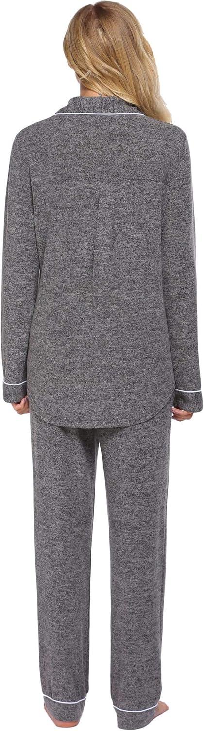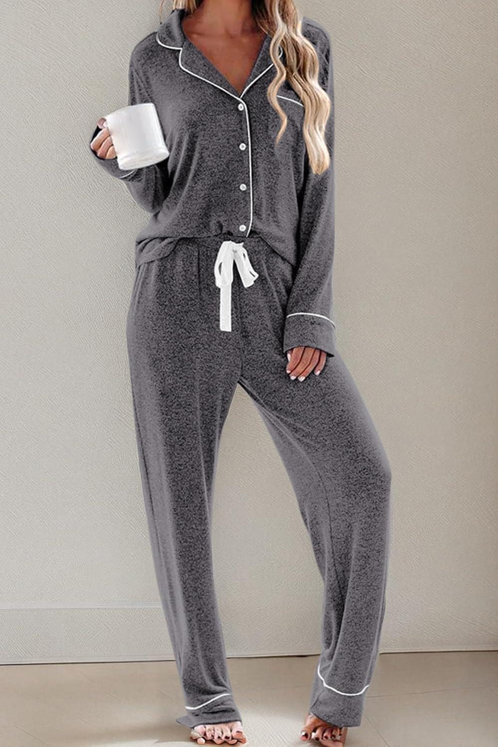 Ekouaer Women's Pajamas Long Sleeve Sleepwear Casual Button Down Loungewear Soft Pjs Set S-XXL(Flower Grey)