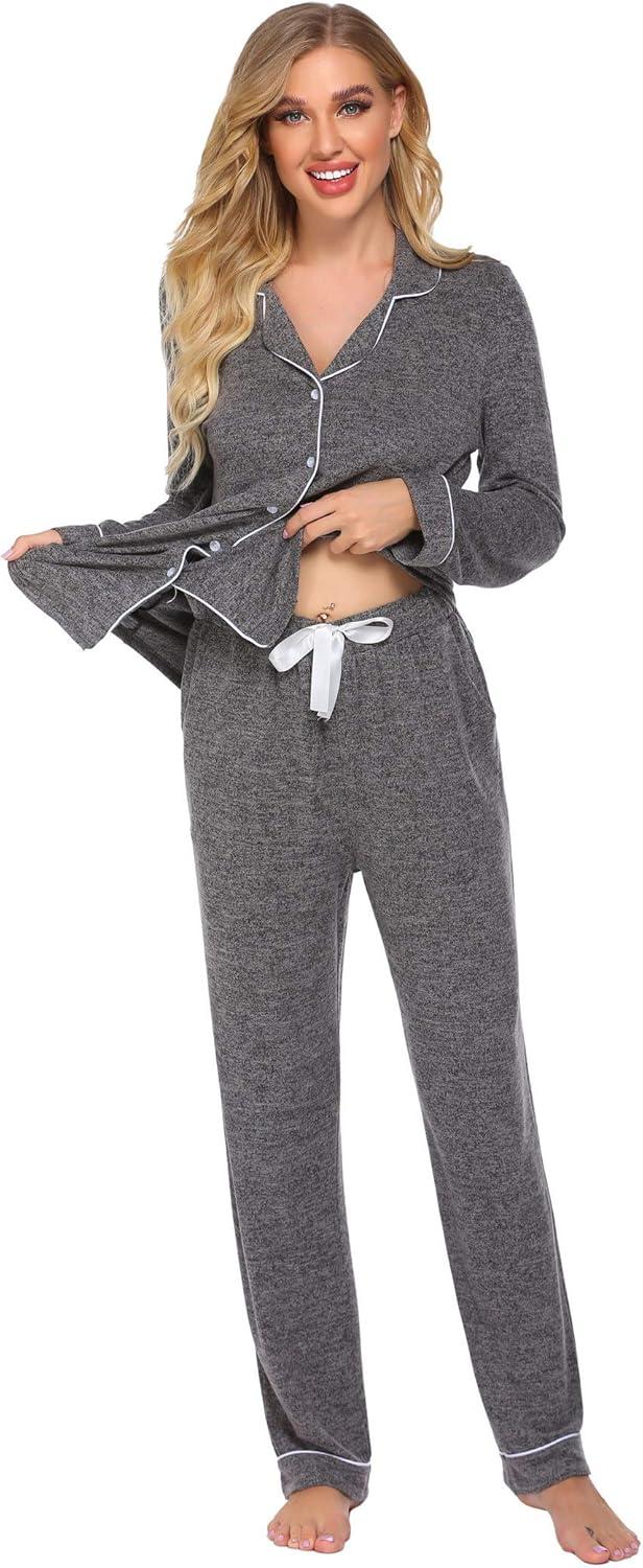 Ekouaer Women’s Pajamas Long Sleeve Sleepwear Casual Button Down Loungewear Soft Pjs Set S-XXL(Flower Grey)