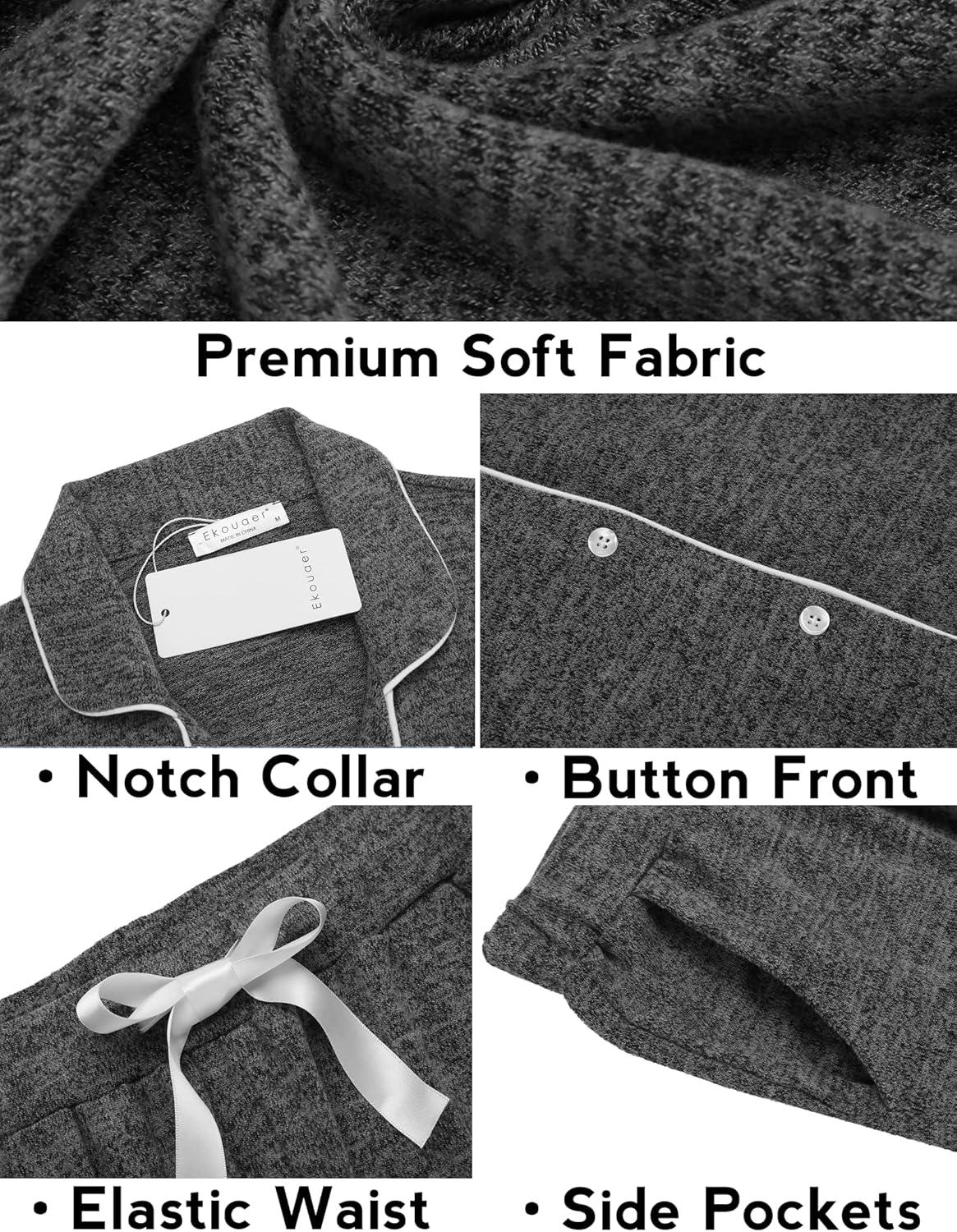 Ekouaer Women’s Pajamas Long Sleeve Sleepwear Casual Button Down Loungewear Soft Pjs Set S-XXL(Dark Green)