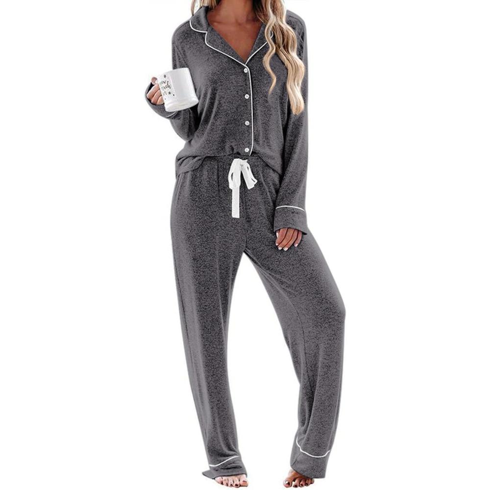 imageEkouaer Womens Pajamas Long Sleeve Sleepwear Casual Button Down Loungewear Soft Pjs Set SXXLFlower Grey
