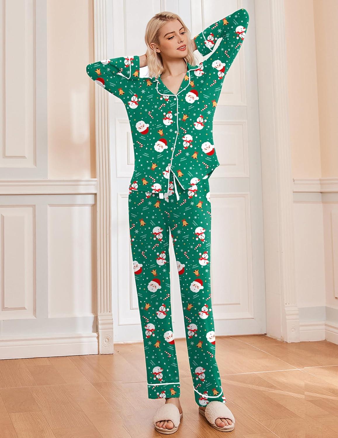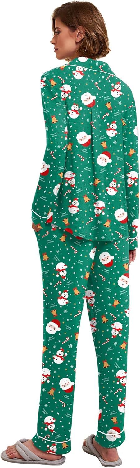 Ekouaer Women's Pajamas Long Sleeve Sleepwear Casual Button Down Loungewear Soft Pjs Set S-XXL(Santa Claus)