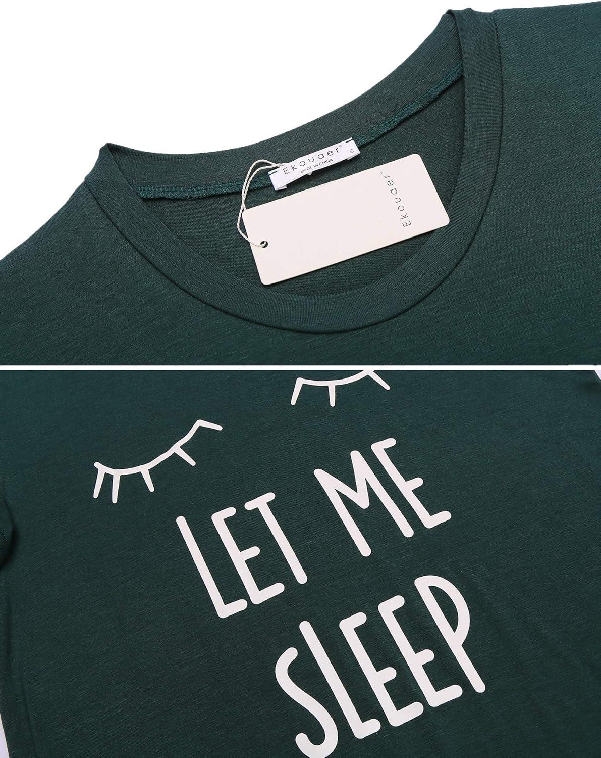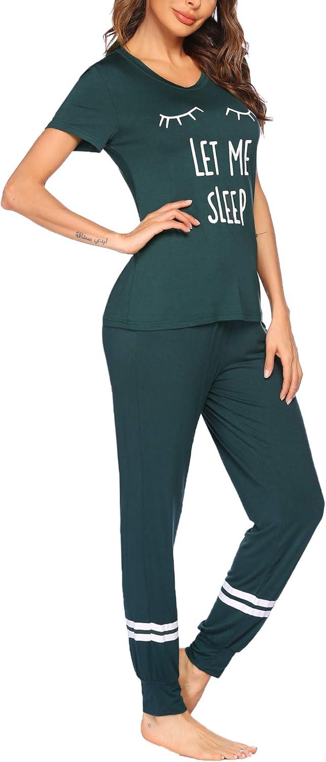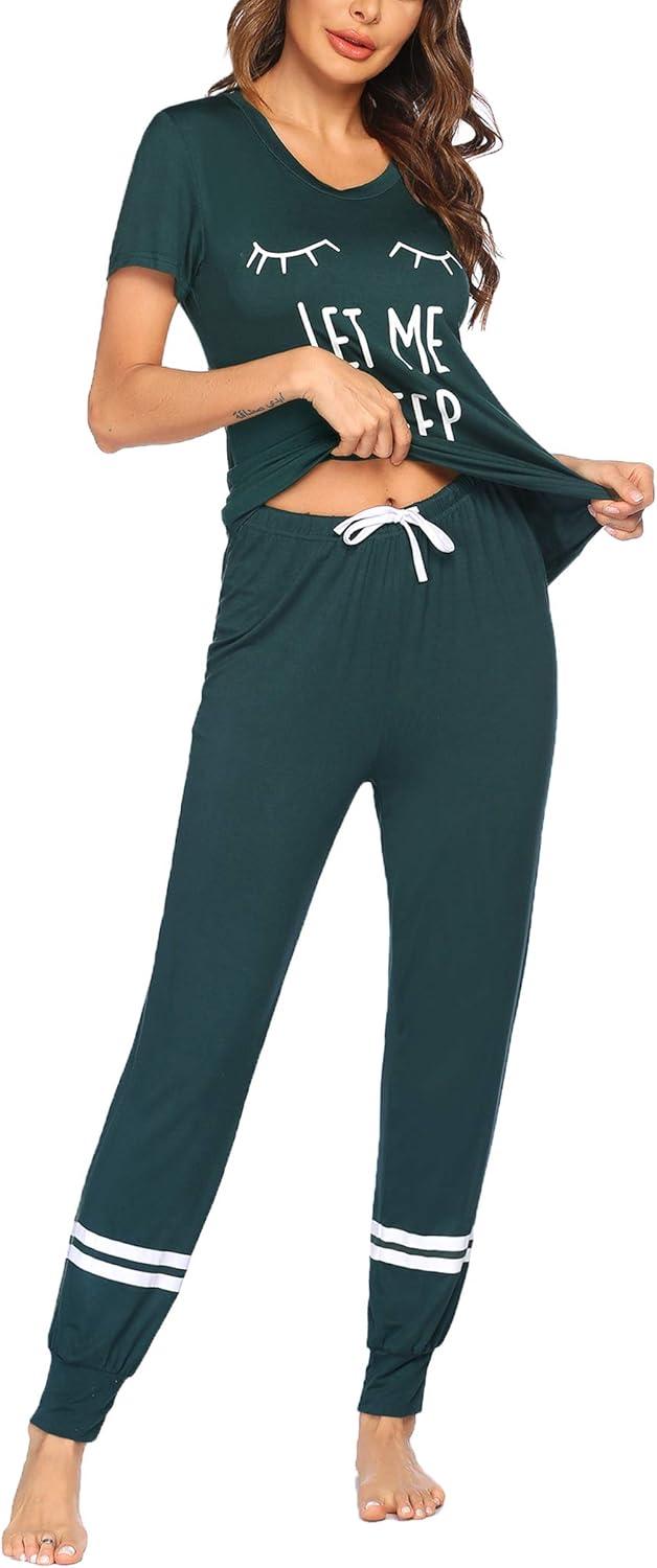 Ekouaer Womens Pajamas Set 2 Piece Lounge Pj Set Short Sleeve Sleepwear Tops with Joggers Pants Loungewear Print Nightwear(Deep Green)