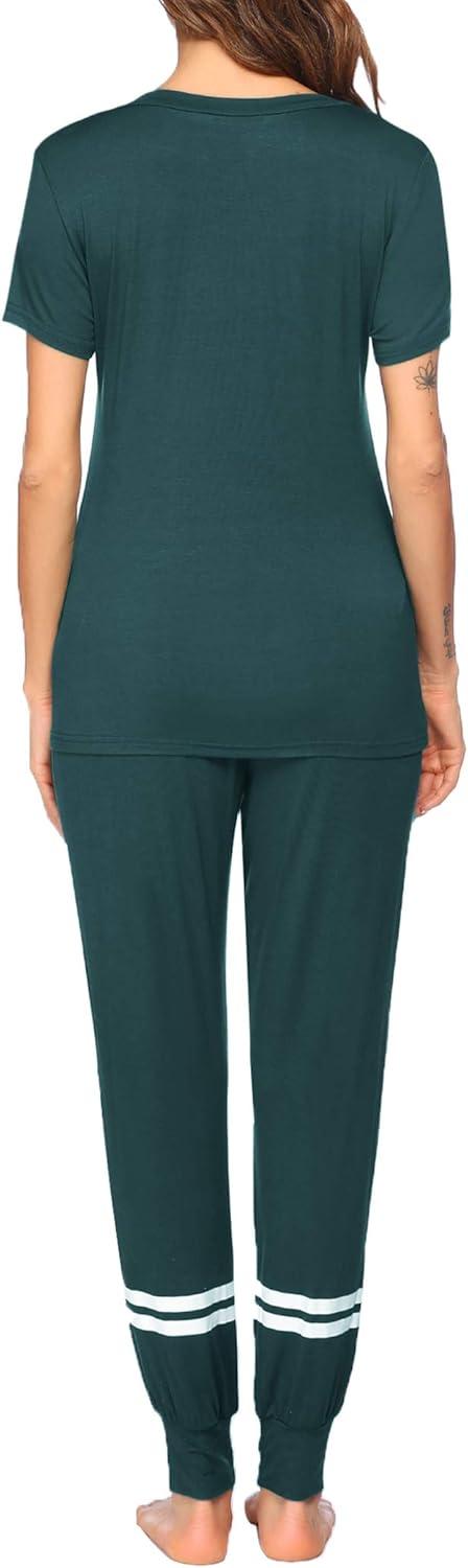 imageEkouaer Womens Pajamas Set 2 Piece Lounge Pj Set Short Sleeve Sleepwear Tops with Joggers Pants Loungewear Print NightwearDeep Green