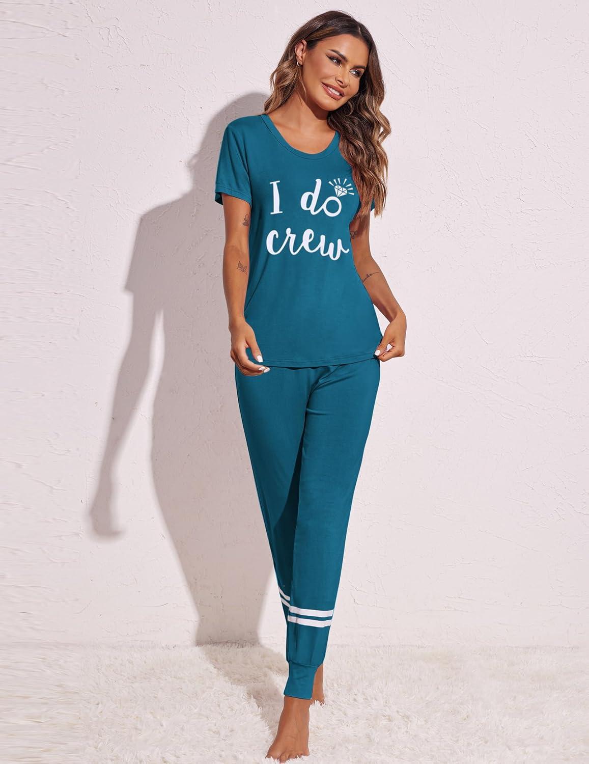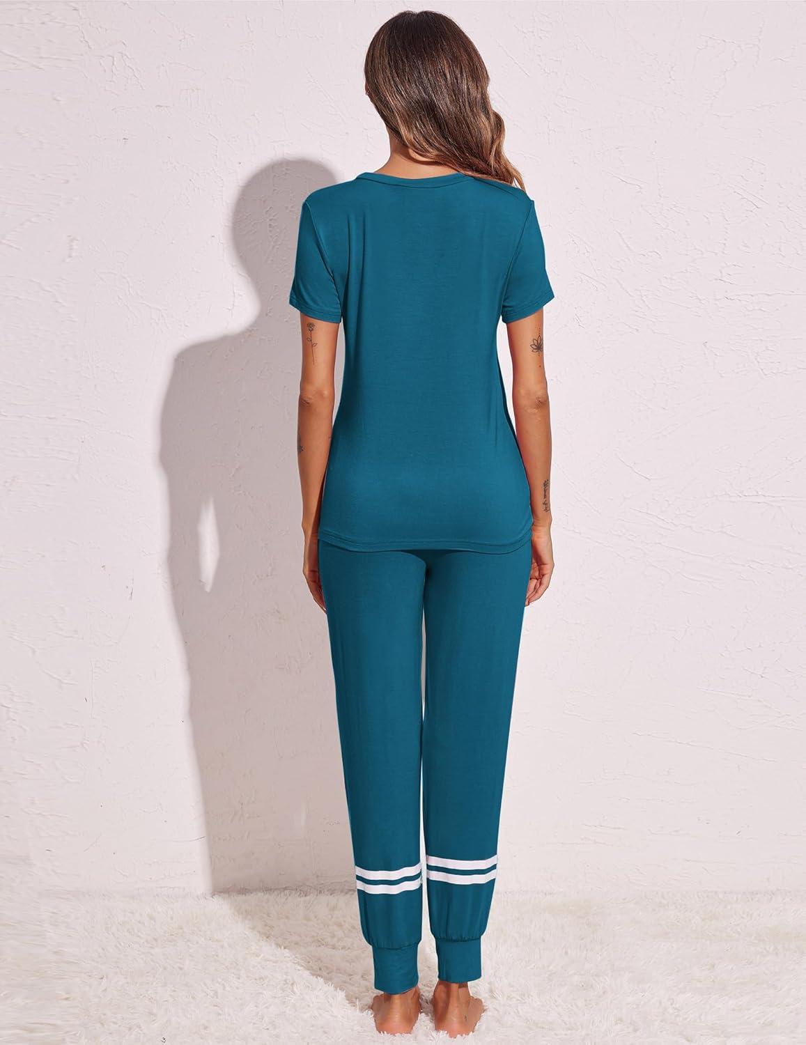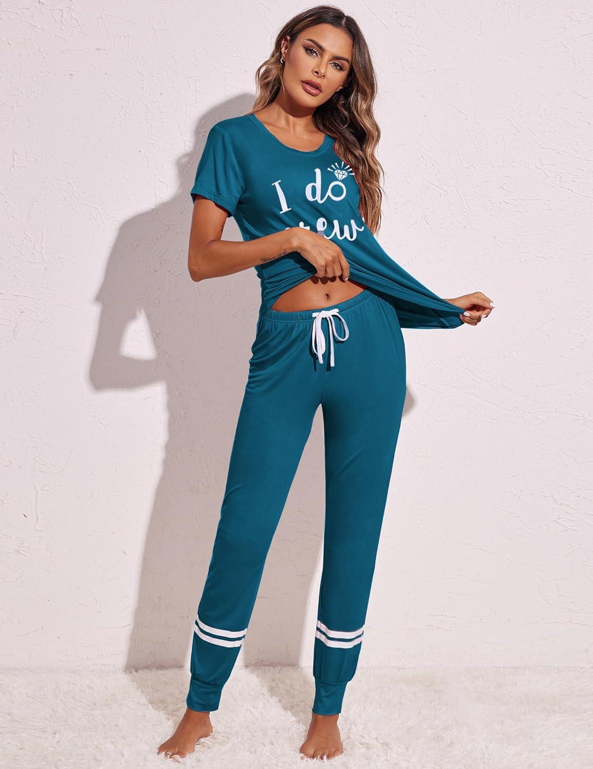 Ekouaer Womens Pajamas Set 2 Piece Lounge Pj Set Short Sleeve Sleepwear Tops with Joggers Pants Loungewear Print Nightwear(Pattern3)