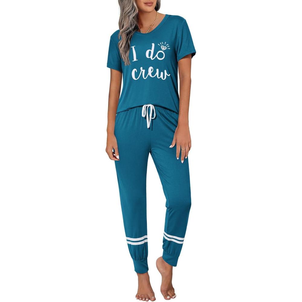 imageEkouaer Womens Pajamas Set 2 Piece Lounge Pj Set Short Sleeve Sleepwear Tops with Joggers Pants Loungewear Print NightwearPattern4
