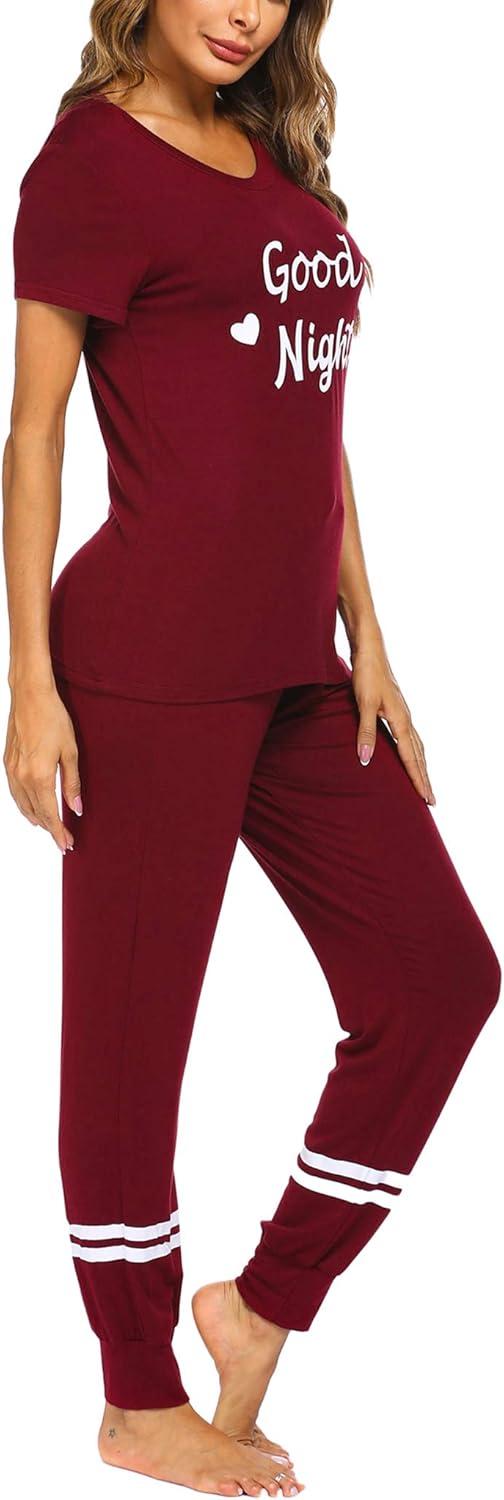 Ekouaer Womens Pajamas Set 2 Piece Lounge Pj Set Short Sleeve Sleepwear Tops with Joggers Pants Loungewear Print Nightwear(Wine Red)